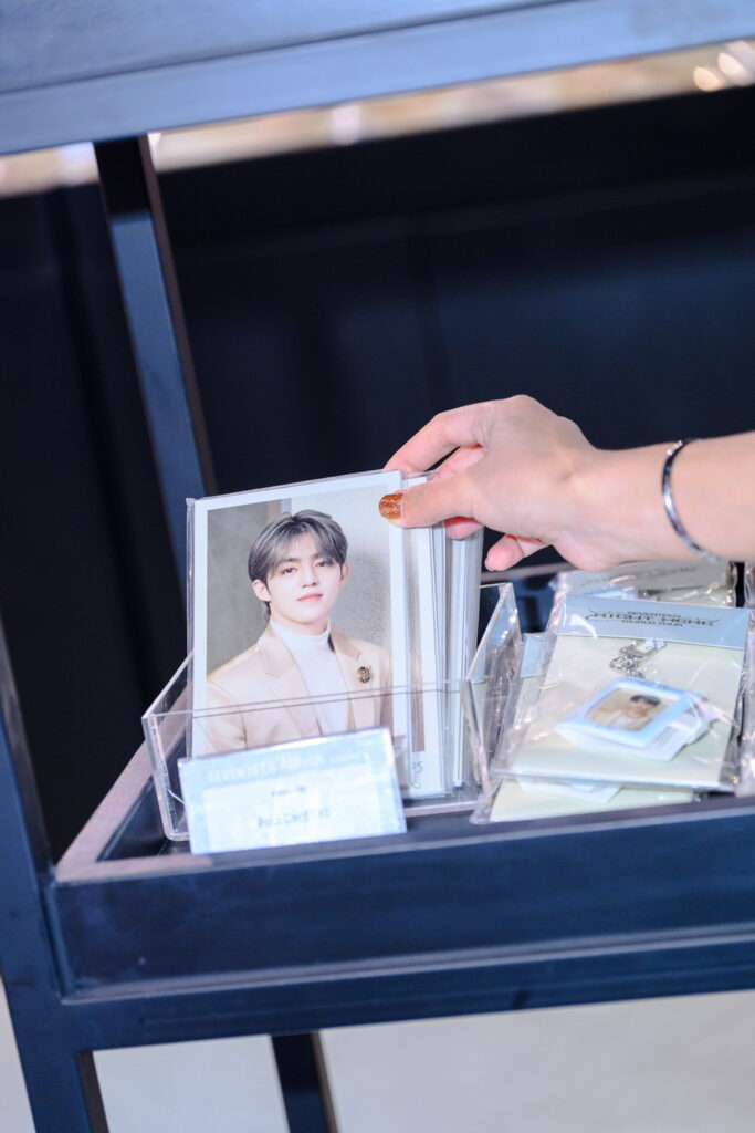 ภายในร้านป๊อปอัพถูกรังสรรค์ให้เป็นจักรวาลของ SEVENTEEN รวมทุกโมเมนต์จากเวิลด์ทัวร์ และคาแรกเตอร์สุดรักไว้ในที่เดียว เปิดโอกาสให้แฟนๆ ได้สะสม Official Merchandise ดีไซน์พิเศษ พร้อมไอเท็มลิมิเต็ดอีกมากมาย