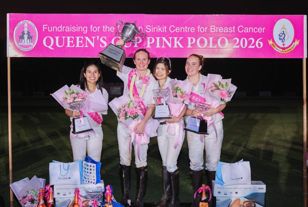 จบลงอย่างน่าประทับใจสำหรับการจัดการแข่งขันขี่ม้าโปโลหญิงการกุศล รายการ “ควีนส์คัพ พิงค์ โปโล 2026” (Queen’s Cup Pink Polo 2026)  ชิงถ้วยพระราชทาน สมเด็จพระนางเจ้าสิริกิติ์ พระบรมราชินีนาถ พระบรมราชชนนีพันปีหลวง เพื่อหารายได้ช่วยเหลือผู้ป่วยมะเร็งเต้านมที่ขาดโอกาสภายใต้การดำเนินงานของศูนย์สิริกิติ์บรมราชินีนาถ เพื่อโรคมะเร็งเต้านม ที่จัดโดย  บี.กริม นำโดย มร.ฮาราลด์ ลิงค์ ประธาน บี.กริม ในฐานะนายกสมาคมกีฬาขี่ม้าแห่งประเทศไทย พร้อมด้วย นันทินี แทนเนอร์ อุปนายกสมาคมฯ ประธานจัดการแข่งขันขี่ม้าโปโลหญิงการกุศล เมื่อวันเสาร์ที่ 28 กุมภาพันธ์  2569 ที่ผ่านมา  ณ สนามไทย โปโล แอนด์ อีเควสเทรียน คลับ พัทยา ซึ่งเป็นการแข่งขันโปโลหญิงระดับนานาชาติ จากทีมประเทศไทย สิงคโปร์ และเกาหลี โดยในปีนี้ทีมเจ้าภาพไทย โปโล (Thai Polo)  เป็นผู้คว้าชัยได้ถ้วยพระราชทานฯ ไปครอง ท่ามกลางเสียงกองเชียร์ที่ส่งเสียงเชียร์อย่างสนุกสนาน