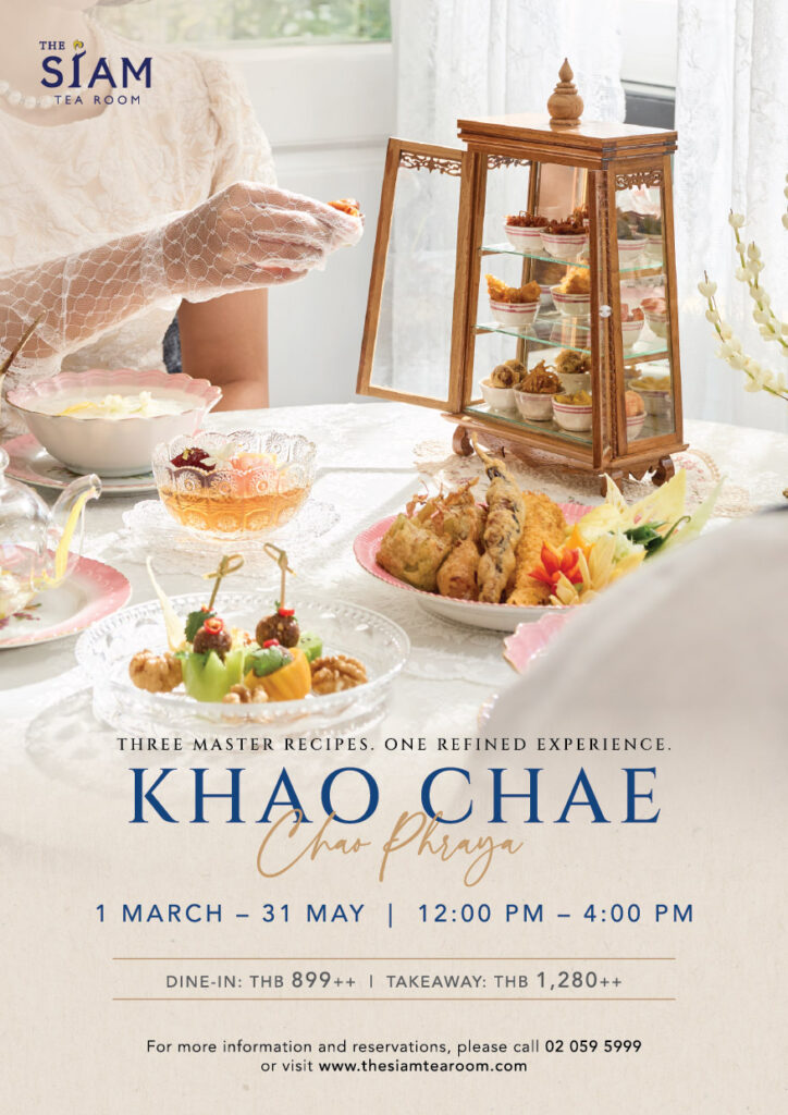 สำรับข้าวแช่เจ้าพระยาพร้อมให้บริการตั้งแต่วันที่ 1 มีนาคม – 31 พฤษภาคม 2568 เวลา 12.00 – 16.00 น. ในราคา 899++ บาทต่อท่าน และแบบบรรจุกล่องกลับบ้านในราคา 1,280++ บาท