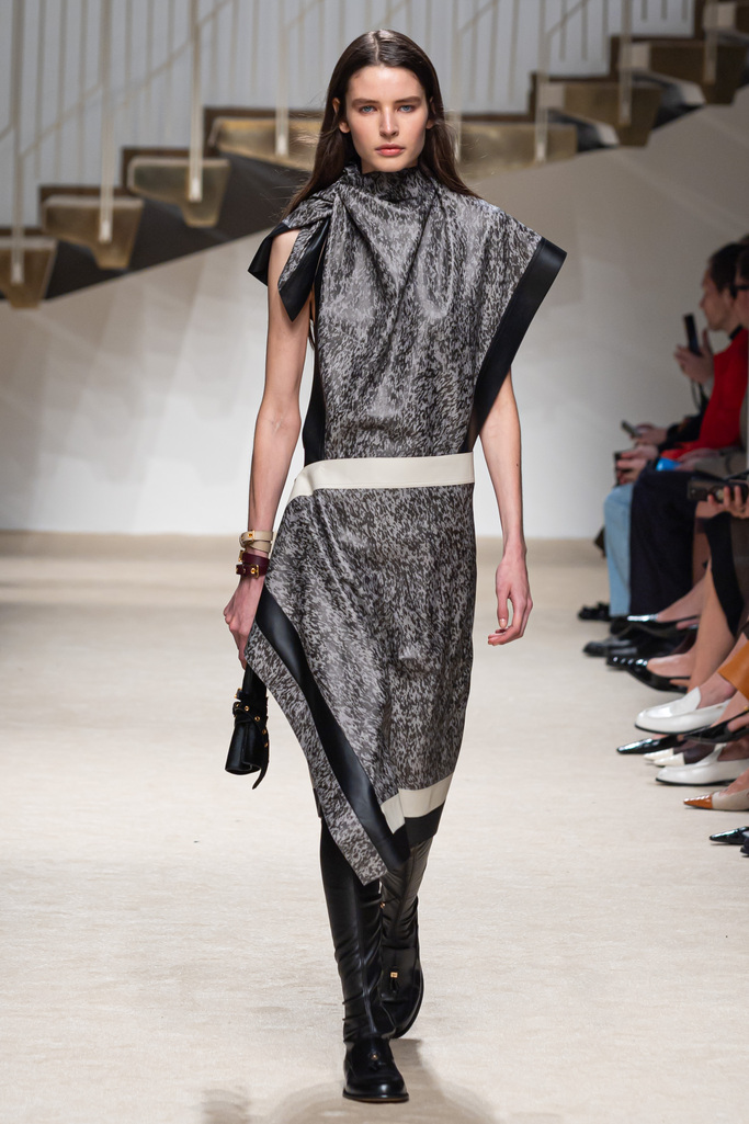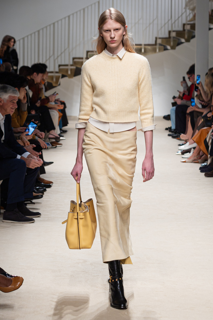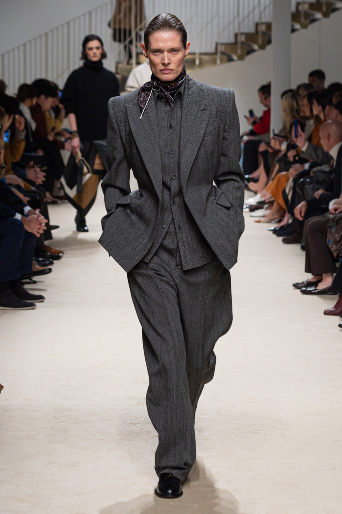 ในคอลเลกชันเสื้อผ้า Ready-to-wear โครงสร้างที่ใหญ่โอบล้อมสรีระถูกนำมาเล่นกับชิ้นที่พอดีเข้ารูป แขนเสื้อถูกปรับให้สั้นลง พร้อมทรงเอวที่ขับรูปชัดเจนยิ่งขึ้น เสื้อโค้ทชิ้นไอคอนิกอย่าง เทรนช์โค้ท และ เสื้อโค้ททรง Peacoat ได้รับการตีความใหม่ด้วยงานตัดเย็บแบบกูตูร์ เสื้อแจ็คเก็ตบอมเบอร์แบบควิลท์รังสรรค์จากหนังลูกวัวอ่อนเนื้อนุ่มที่ช่วยเติมเต็มตู้เสื้อผ้า เดรสผ้าพันคอรังสรรค์ด้วยเทคนิคงานแพตช์เวิร์ก (Patchwork) ที่ออกแบบให้เป็นลวดลายกราฟิกโดดเด่นชัดเจน ส่วนเฉดสีประกอบด้วยโทนธรรมชาติเรียบหรู ไม่ว่าจะเป็นสีเฉดคาราเมลไหม้ ขิง และช็อกโกแลต ตัดกับสีดำและสีขาวอย่างคมชัด สร้างเอฟเฟกต์ความสมดุลได้อย่างลงตัว