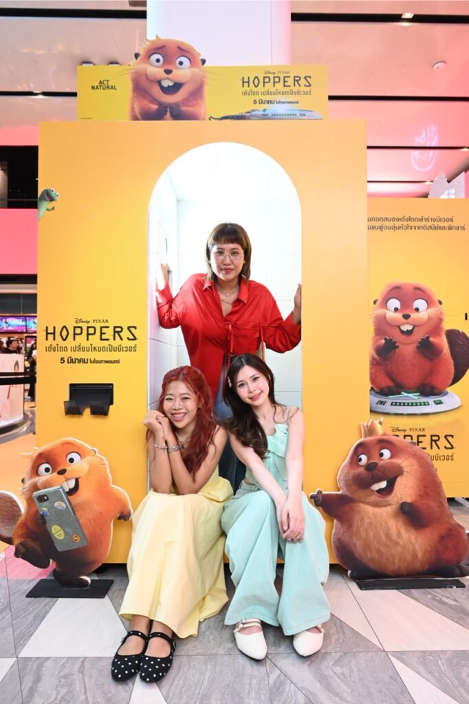 งานนี้นอกจากจะมีไฮไลต์เป็นการปรากฏตัวของเหล่านักพากย์คนดังที่มาร่วมเฉลิมฉลองการเปิดตัวภาพยนตร์ พร้อมพูดคุยถึงเบื้องหลังการทำงาน ยังสร้างสีสันด้วยกิจกรรมหลากหลาย ทั้งบ่อบอลที่จำลองเป็นหนองน้ำในเรื่องมาให้ได้อินไปกับอาณาจักรสัตว์ และยังยกเอาคาแรกเตอร์บีเวอร์ขนาดมหึมามาให้สัมผัสความน่ารักแบบเต็ม ๆ ได้ฟรี! ใครอยากถ่ายรูปกับเจ้าบีเวอร์ไปเจอน้อง ๆ ทั้ง 5 ตัว ด้านหน้าโรงภาพยนตร์ 5 แห่ง ตั้งแต่วันนี้ถึง 15 มีนาคม 2569 ที่ SF World Cinema และตั้งแต่วันนี้ถึง 11 มีนาคม 2569 ที่ Paragon Cineplex , Quartier Cineart, Mega Cineplex และ SF Cinema เดอะมอลล์ บางแค สำหรับผู้ถือบัตรชมภาพยนตร์เรื่อง “Disney & Pixar’s Hoppers เด้งโดด เปลี่ยนโหมดเป็นบีเวอร์” รับสิทธิ์ถ่ายภาพในตู้ถ่ายรูปธีม Hoppers โดยบัตรชมภาพยนตร์ 1 ที่นั่ง รับสิทธิ์ถ่ายภาพได้ 1 ครั้ง ร่วมเก็บภาพความประทับใจได้ที่ SF World Cinema เซ็นทรัลเวิลด์ ระหว่างวันที่ 3-15 มีนาคม 2569 รวมถึง Paragon Cineplex สยามพารากอน และ Major Ratchayothin ระหว่างวันที่ 5-15 มีนาคม 2569