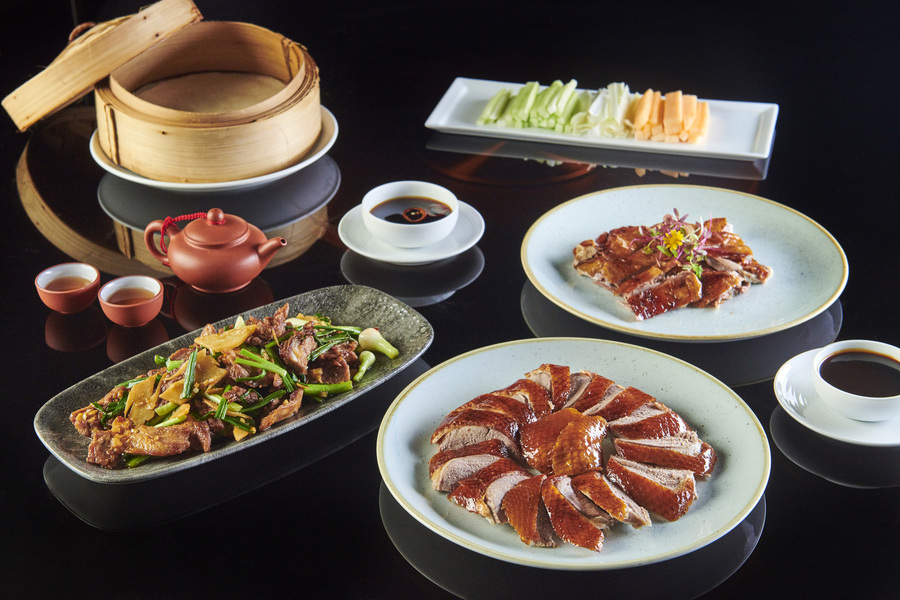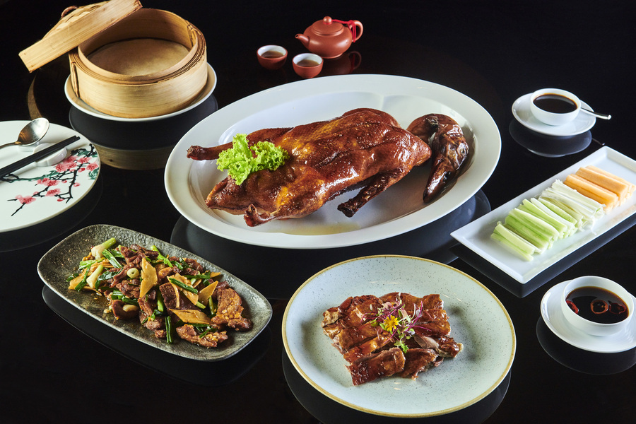 เมนูสุดพิเศษนี้ถูกรังสรรค์เป็น 3 คอร์ส เริ่มต้นด้วยการเสิร์ฟหนังเป็ดกรอบและเนื้อเป็ดฉ่ำหวานในสไตล์ดั้งเดิม รับประทานคู่กับแผ่นแป้งจีนโฮมเมดบางนุ่ม พร้อมเครื่องเคียงสูตรคลาสสิก ต่อด้วยขาเป็ดที่ผ่านการปรุงอย่างพิถีพิถันจนเนื้อนุ่มละมุน เสิร์ฟพร้อมซอสบ๊วยรสกลมกล่อม และปิดท้ายด้วยเนื้อเป็ดผัดกระเทียมในกระทะร้อน กลิ่นหอมชวนรับประทาน