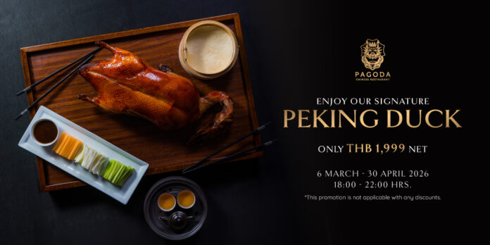ห้องอาหารพาโกด้า ไชนีส เรสเตอรองท์ ห้องอาหารจีนกวางตุ้งร่วมสมัย ที่ โรงแรมแบงค็อก แมริออท มาร์คีส์ ควีนส์ปาร์ค เชิญชวนทุกท่านมาสัมผัสความอร่อยของ “เป็ดปักกิ่ง” หนึ่งในเมนูอาหารจีนเลื่องชื่อระดับโลก ที่คัดสรรอย่างพิถีพิถัน พร้อมนำเสนอในราคาพิเศษ ท่ามกลางบรรยากาศหรูหราของห้องอาหาร หรือในห้องรับรองส่วนตัวที่อบอุ่น