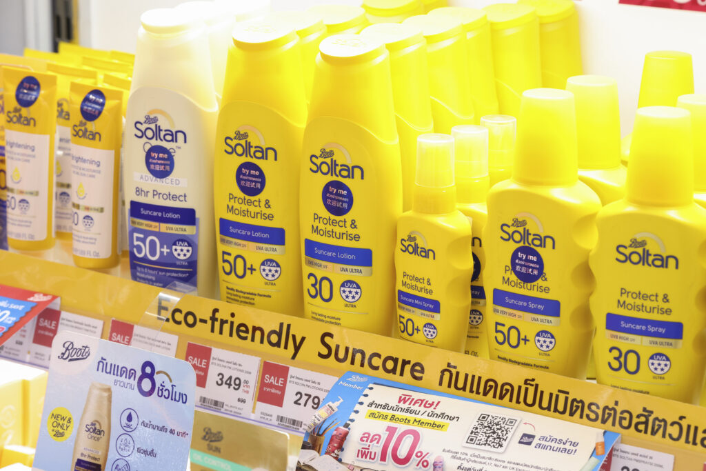 - Boots Soltan: ผลิตภัณฑ์กันแดดมาตรฐานอังกฤษที่ได้รับความไว้วางใจมาอย่างยาวนาน มอบการปกป้องผิวจากรังสี UVA/UVB ที่ผ่านการทดสอบประสิทธิภาพบนผิวหนังมนุษย์จริงในกลุ่มอาสาสมัคร (In-Vivo test) ได้อย่างครอบคลุม เหมาะสำหรับทุกคนในครอบครัว