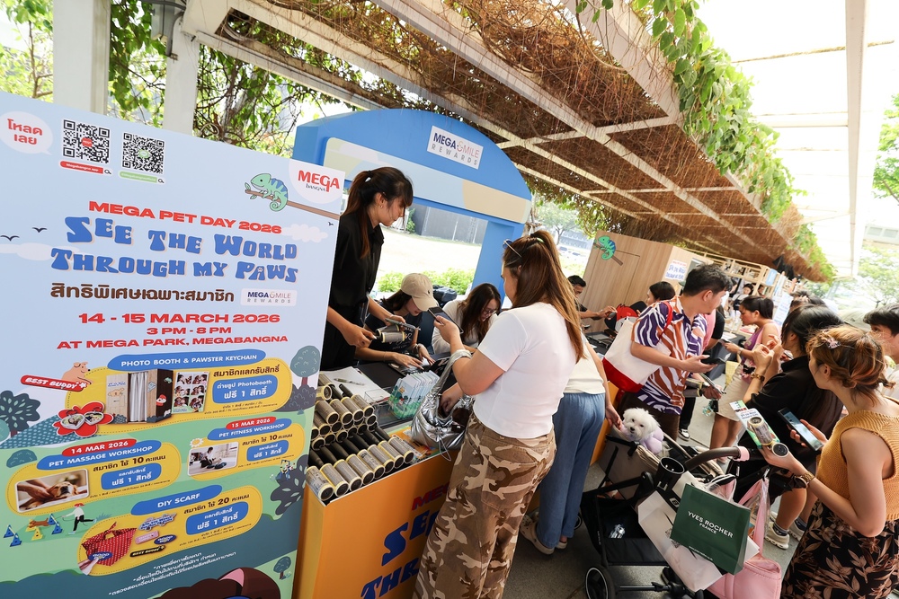 ศูนย์การค้าเมกาบางนา ตอกย้ำความเป็น PET-FRIENDLY DESTINATION สำหรับ PET PARENTS และเพื่อนซี้สี่ขา ในงาน “MEGA PET DAY 2026 : SEE THE WORLD THROUGH MY PAWS” ที่จัดขึ้นอย่างอบอุ่นและคึกคัก ณ เมกา พาร์ค พื้นที่สีเขียวใจกลางศูนย์ฯ โดยได้รับการตอบรับอย่างล้นหลามจากเหล่า PET COMMUNITY ที่มาร่วมเปิดประสบการณ์ใหม่ ใช้เวลาคุณภาพร่วมกัน และเพลิดเพลินกับกิจกรรมหลากหลายที่ออกแบบมาเพื่อตอบโจทย์ไลฟ์สไตล์ของคนรักสัตว์เลี้ยงอย่างครบครัน ซึ่งในปีนี้มีจำนวนผู้เข้าร่วมงานเพิ่มขึ้นสูงกว่าปีที่ผ่านมา 20% สะท้อนถึงความนิยมที่เติบโตอย่างต่อเนื่อง และความสำเร็จอย่างยิ่งใหญ่ของงาน ตอกย้ำบทบาทของเมกาบางนาในฐานะจุดหมายปลายทางที่พร้อมเติมเต็มความสุขให้ทุกสมาชิกในครอบครัวอย่างแท้จริง