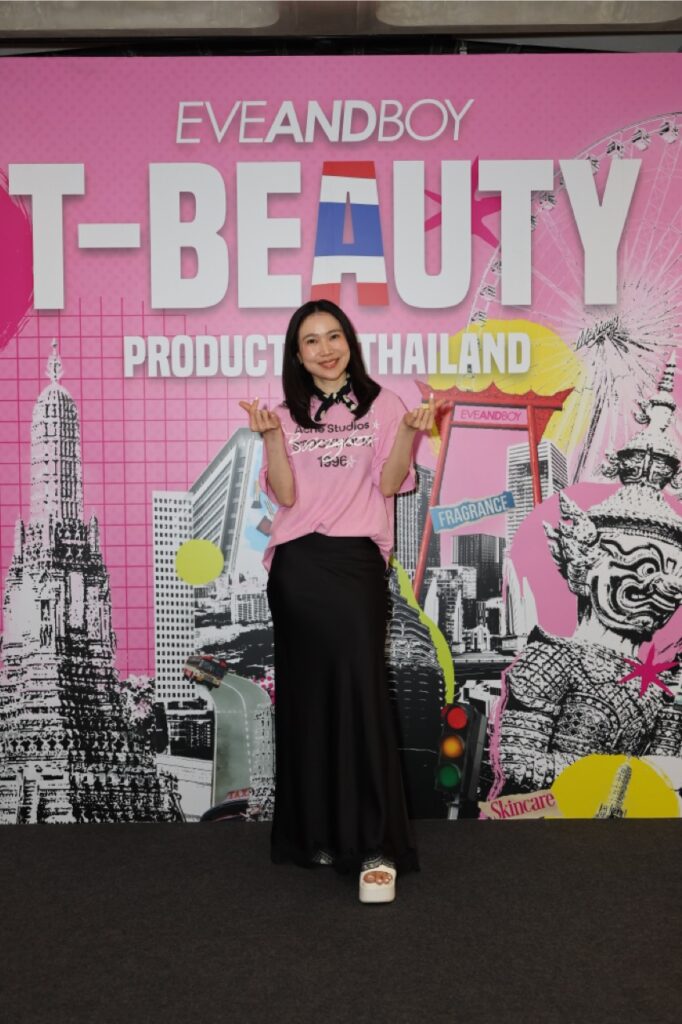 หิรัญ ตันมิตร ประธานเจ้าหน้าที่บริหาร บริษัท อีฟ แอนด์ บอย จำกัด กล่าวว่า “ในช่วงหลายปีที่ผ่านมาเรามองเห็นเทรนด์ตลาดเครื่องสำอางไทยคึกคักมาก มีหลากหลายแบรนด์ที่ทำให้ตลาดสนุกสนานมากยิ่งขึ้น ซึ่งกระแส T-Beauty ได้ยกระดับจากความเป็นเทรนด์ภายในประเทศสู่เวทีสากลอย่างเต็มตัว บรรดานักท่องเที่ยวชาวมาเลเซีย จีน อินเดีย รัสเซีย และเกาหลีใต้ ต่างแห่แหนกันค้นหาและเลือกซื้อแบรนด์ไทยกลับบ้านในฐานะ “เครื่องสำอางไทยที่ต้องซื้อ”(T-Beauty Must-buy) แทนที่สินค้าแฟชั่นหรือของที่ระลึกทั่วไป ปรากฏการณ์นี้สะท้อนชัดเจนว่าเครื่องสำอางไทยได้ก้าวข้ามภาพจำเดิม ๆ ของราคาย่อมเยา มาสู่มิติใหม่ที่พร้อมสู้กับแบรนด์นานาชาติในเรื่องคุณภาพ นวัตกรรม และความคิดสร้างสรรค์ เราจึงอยากยกระดับแบรนด์เครื่องสำอางไทยสู่สายตาชาวโลกอย่างยั่งยืน”