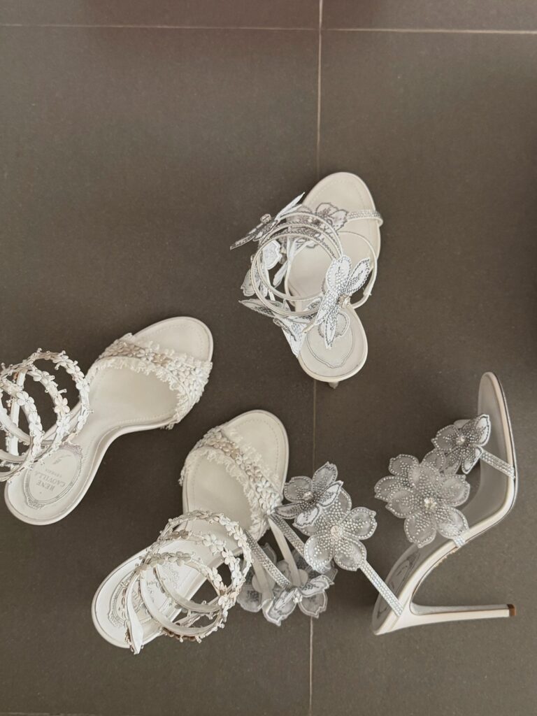 อีกหนึ่งดีไซน์ที่ถ่ายทอดความงดงามของเจ้าสาวได้อย่างน่าประทับใจคือ René Caovilla Bloom White Sandal รองเท้าโทนสีขาวบริสุทธิ์ที่สะท้อนความอ่อนหวานและความละเอียดอ่อนของงานฝีมือชั้นสูง ด้วยการตกแต่งดอกไม้สามมิติที่ประดับด้วยคริสตัลซึ่งถูกจัดวางด้วยมืออย่างประณีต ดีไซน์นี้ได้รับแรงบันดาลใจจากความงดงามของดอกไม้ที่ผลิบานในฤดูใบไม้ผลิ สื่อถึงความสดใส ความหวัง และการเริ่มต้นบทใหม่ของชีวิตคู่