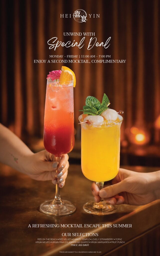 สิทธิพิเศษ! ดับกระหายคลายร้อนกับโปรโมชั่น ซื้อ 1 แถม 1 สำหรับเมนูม็อกเทลทุกรายการ ทุกวันจันทร์ – ศุกร์ เวลา 11:00 – 19:00 น. ตลอดช่วงฤดูกาลนี้ที่เฮยยิน