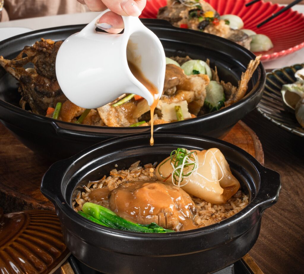 • ข้าวอบเป๋าฮื้อกระเพาะปลาสดหม้อดิน: เมนูอุ่นท้องที่รวบรวมสุดยอดวัตถุดิบแห่งความมั่งคั่ง เมนูข้าวอบสไตล์กวางตุ้งที่เสิร์ฟความหอมกรุ่นของข้าวที่ดูดซับรสชาติเป๋าฮื้อไว้ทุกอณู พร้อมกระเพาะปลาสดที่ดีต่อสุขภาพอร่อยเต็มคำ (800++ บาท)