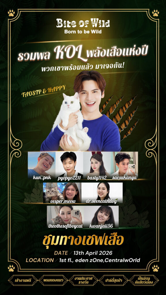 Bite of Wild ชวนเหล่าทาสแมวมาชุมนุมในงาน “ชุมทางเชฟเสือ” เข้าชมฟรี! จันทร์ที่ 13 เมษายนนี้ ณ ชั้น 1 ลาน Eden ศูนย์การค้าเซ็นทรัลเวิลด์