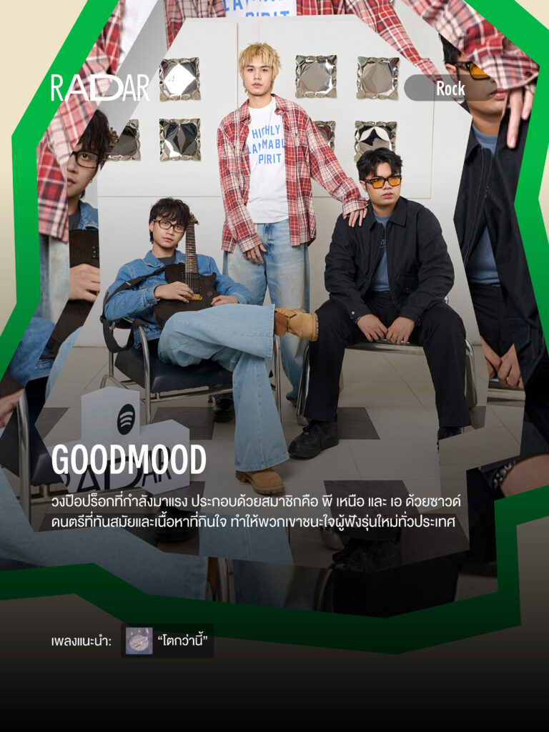 RADAR คือโปรแกรมระดับโลกของ Spotify ที่มุ่งเน้นการค้นหา สนับสนุน และผลักดันศิลปินรุ่นใหม่ ซึ่งรายชื่อศิลปินไทยในปี 2026 นี้ ถือว่าเป็นกลุ่มที่น่าจับตามองที่สุดเท่าที่เคยมีมา ทั้ง GOODMOOD ศิลปินที่ถ่ายทอดอารมณ์ดิบและจริงใจเข้ากับยุคสมัยใหม่ของวงการร็อกไทย ส่วน JayQ และ YUNGTARR พร้อมจะขับเคลื่อนวงการฮิปฮอปด้วยพลังงานที่สดใหม่และไม่เกรงกลัวใคร ในขณะที่ pami WAV และ the ge ก็ดึงอารมณ์ความนุ่มลึกและจิตวิญญาณมาใส่ในเพลงอินดี้อาร์แอนด์บีได้อย่างลงตัว ทางด้าน VVV และ JustmineNika กำลังสร้างนิยามใหม่ให้กับทั้งแนวเพลงและภาพลักษณ์ของ T-Pop ยุคปัจจุบัน