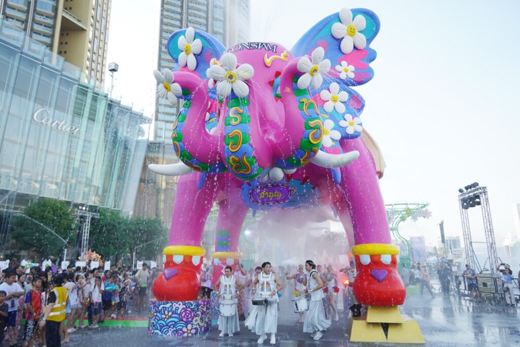 นอกจากความบันเทิงในวันเปิดงานแล้ว ไอคอนสยามยังเนรมิตประสบการณ์สงกรานต์สุดครบเครื่องภายใต้แนวคิด 4 THAICONIC ทั้ง THAICONIC SPLASH สนุกกับการเล่นน้ำริมเจ้าพระยากับ Water Landmark ช้างยักษ์พ่นน้ำ “ฉ่ำบุญและรินสุข” ผลงาน Art Collaboration สุดเก๋ พร้อมโซนเล่นน้ำสำหรับเด็กและนวัตกรรมเป่าแห้งพลังงานสะอาด, THAICONIC ENTERTAINMENT ยกทัพขบวนศิลปินชื่อดังที่พาเหรดมาสร้างความมันส์ อาทิ เติ้ล-เฟิร์สวัน, ตี๋ตี๋-ป๋อ, อู่อู๋-เซฟ, ต้าห์อู๋-ออฟโรด, กระแต อาร์สยาม และอีกมากมาย สำหรับสายวัฒนธรรมต้องไม่พลาด THAICONIC HERITAGE ชมความวิจิตรของขบวนแห่นางสงกรานต์รากษสเทวี โดยไอคอนแห่งยุคอย่าง หลิงหลิง-ออม ในวันที่ 11 เมษายน 2569 และ 4EVE ในวันที่ 13 เมษายน 2569 พร้อมอิ่มอร่อยกับเมนูไทยต้นตำรับกว่า 170 ร้าน และยังเสริมความเป็นสิริมงคลกับ THAICONIC BLESSED BEGINNINGS ร่วมสรงน้ำพระปางประทานพรและหลวงพ่อเงินเพื่อเสริมพลังชีวิตรับปีใหม่ไทย