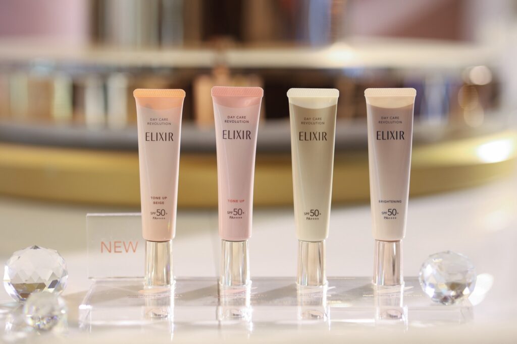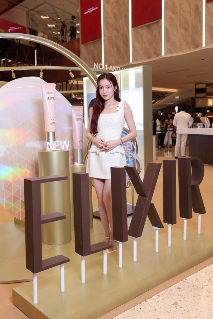 ELIXIR (อิลิคเซอร์)แบรนด์ Anti-Agingสกินแคร์อันดับ 1ในญี่ปุ่น^ผู้เชี่ยวชาญด้านคอลลาเจนมายาวนานกว่า40ปี     จัดงาน ELIXIR Tone Up UV, The New Era of Pearl Glow Moments ณDUSIT CENTRAL PARK ต่อยอดความสำเร็จของกันแดดที่มียอดขายกว่า 2.5ล้านชิ้นทั่วโลก*ด้วยการเปิดตัวผลิตภัณฑ์กันแดดขายดีเฉดสีใหม่! ELIXIR Day Care Revolution Tone Up SPF50+ PA++++สี Pure Beige กันแดดโทนอัพบูสคอลลาเจน+ปรับโทนสีผิวให้สม่ำเสมอ พร้อมปกปิดจุดด่างดำ ผสาน 3 คุณสมบัติในหนึ่งเดียว ทั้งกันแดด,ไพร์เมอร์ และมอยส์เจอร์ไรเซอร์บำรุงผิว ช่วยให้ผิวดูเปล่งปลั่งอ่อนเยาว์ ละเอียดเรียบเนียน กระจ่างใสขึ้น และช่วยให้เมคอัพติดทนนานยิ่งขึ้น เผยผิวสวยโกลว์ใสเปล่งปลั่ง12ชั่วโมง**