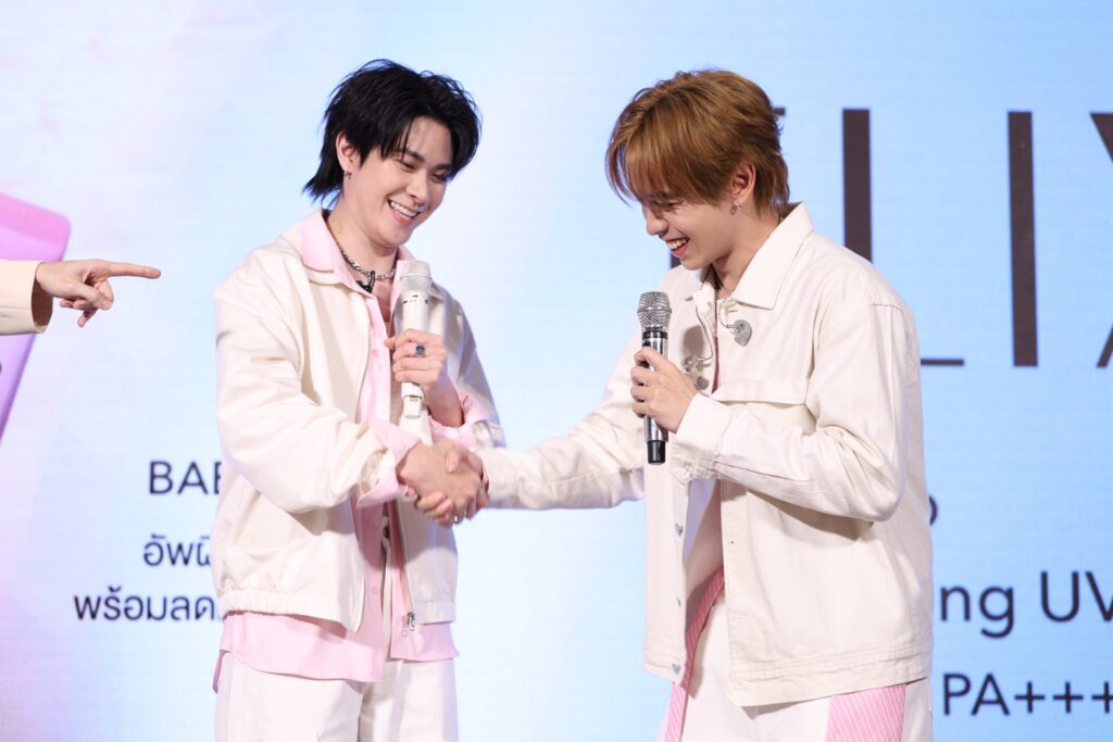 ด้าน 2หนุ่มสุดฮอท แจ็คกี้-จักริน และ เติร์ด-ลภัส เผยว่า ดีใจมากที่ได้มาร่วมงานเปิดตัวผลิตภัณฑ์กันแดดของแบรนด์ ELIXIRเพราะได้ยินชื่อเสียงของแบรนด์นี้มานานแล้ว คิดว่ากันแดดโทนอัพเฉดสีใหม่ของ ELIXIRช่วยตอบโจทย์ไลฟ์สไตล์เป็นอย่างมาก เพราะนอกจากจะช่วยปกป้องผิวจากแดดแล้ว ยังเป็นบำรุงด้วยไปในตัว ที่สำคัญคือทาแล้วผิวดูเป็นธรรมมชาติมาก อยากให้แฟนๆ ทุกคนได้ลอง