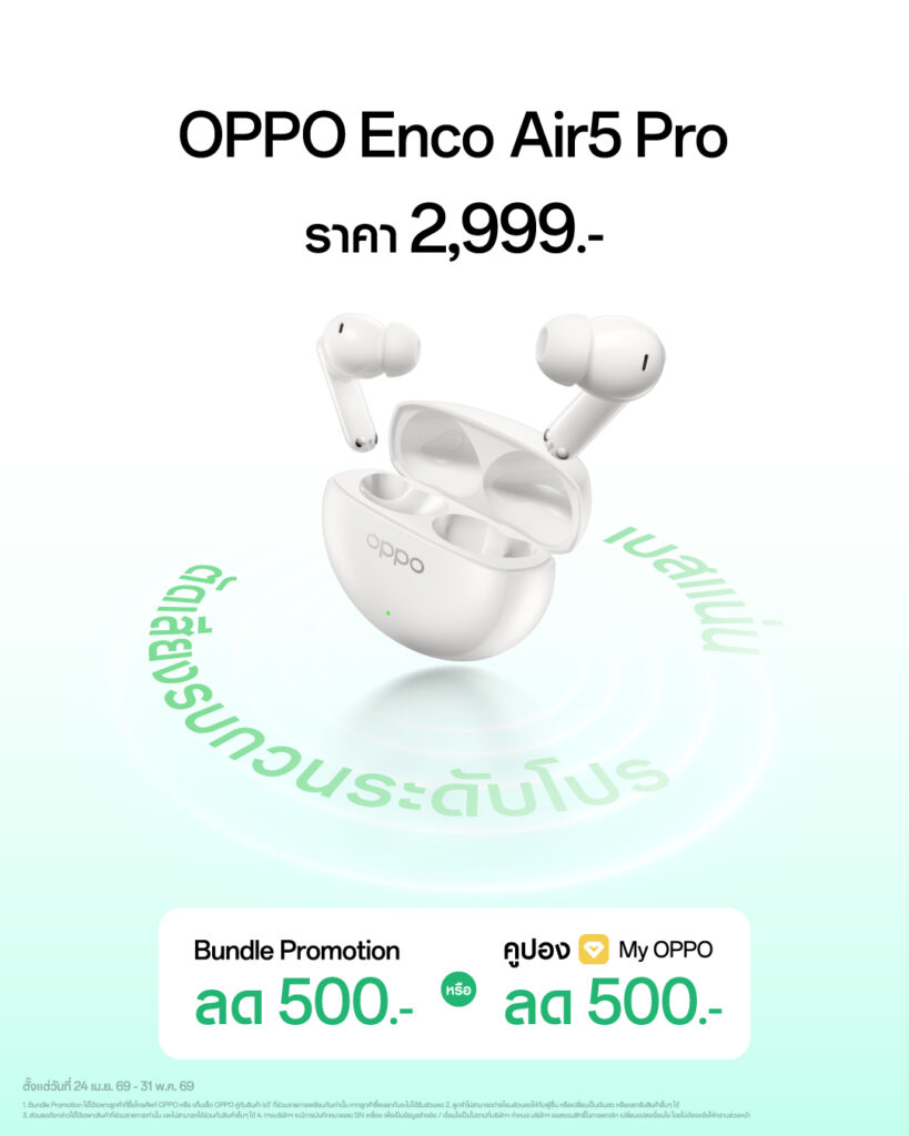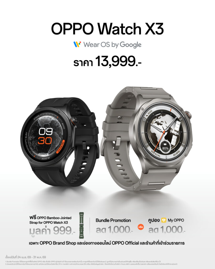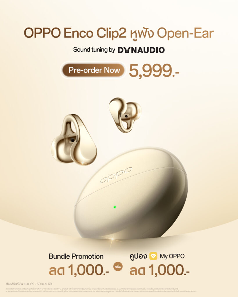 ออปโป้ยังเติมเต็มไลฟ์สไตล์ด้วยผลิตภัณฑ์ IoT ที่ออกแบบมาให้ใช้งานร่วมกันได้อย่างลงตัว ทั้ง OPPO Enco Clip2 หูฟังโอเพนเอียร์สไตล์ Ear Cuff ที่เบาสบายแบบ Zero-Sense ปรับจูนเสียงโดย Dynaudio ใส่ได้ทั้งวันโดยไม่รู้สึกอึดอัด พร้อมแบตเตอรี่ 40 ชั่วโมง วางจำหน่ายราคา 5,999 บาท OPPO Enco Air5 Pro หูฟังตัดเสียงรบกวน 55 เดซิเบล ที่มาพร้อมฟีเจอร์ AI Translate แปลภาษาแบบเรียลไทม์เหมาะสำหรับสายเดินทาง วางจำหน่ายราคา 2,999 บาท และ OPPO Watch X3 สมาร์ตวอทช์ตัวเรือนไทเทเนียมเกรดอากาศยาน ขับเคลื่อนด้วย Google Gemini บนข้อมือ แบตเตอรี่อยู่ได้นานสูงสุด 16 วัน ครบในเครื่องเดียวสำหรับทุกกิจกรรมตั้งแต่ออกกำลังกายไปจนถึงดำน้ำลึก วางจำหน่ายราคา 13,999 บาท