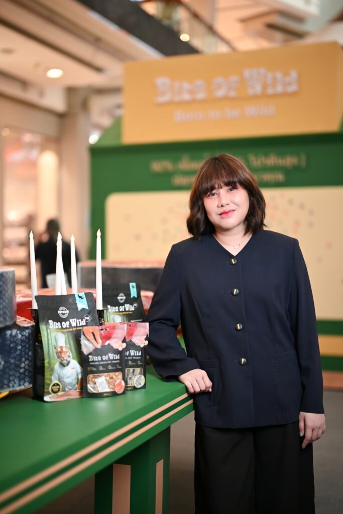 ธนาทิพย์ ว่องไว ผู้ร่วมก่อตั้งแบรนด์ Bite of Wild และ ประธานบริหารประเทศไทย เผยแนวคิด Born to be Wild ของแบรนด์ Bite of Wild ผลิตภัณฑ์อาหารแมวระดับพรีเมียมว่า “เราตั้งใจออกแบบผลิตภัณฑ์อาหารสำหรับน้องแมวให้ใกล้เคียงอาหารตามธรรมชาติของเขา เพื่อตอบโจทย์วิถีการกินแบบโภชาการครบถ้วนเพื่อฟื้นคืนการกินตามธรรมชาติในการเสริมสร้างกล้ามเนื้อ และรักษาสัญชาตญาณนักล่าของแมวไว้ โดยเลือกใช้เทคโนโลยีในการผสมฟรีซดรายและ วัตถุดิบหลักเป็นเนื้อสัตว์แท้ไม่ว่าจะเป็นเนื้อปลาทะเล 5 ชนิด เนื้อไก่สด ที่ให้โปรตีนสูง 42% พร้อมเนื้อปลาแซลมอนที่ให้กรดไขมันดีอย่างโอเมก้า 3 และที่สำคัญต้องปราศจากธัญพืช นอกจากนี้เรายังได้เพิ่มพรีไบโอติกส์และโพรไบโอติกส์เพื่อช่วยดูแลระบบลำไส้ การย่อยอาหาร และเสริมสร้างภูมิคุ้มกัน ด้วยวัตถุดิบทั้งหมดใน Bite of Wild เราใส่ใจทุกสารอาหารที่ช่วยให้น้องแมวที่คุณรักมีกล้ามเนื้อที่แข็งแรง เติบโตอย่างมีสุขภาพที่ดีทั้งจากภายในและเห็นผลได้ชัดจากภายนอก”