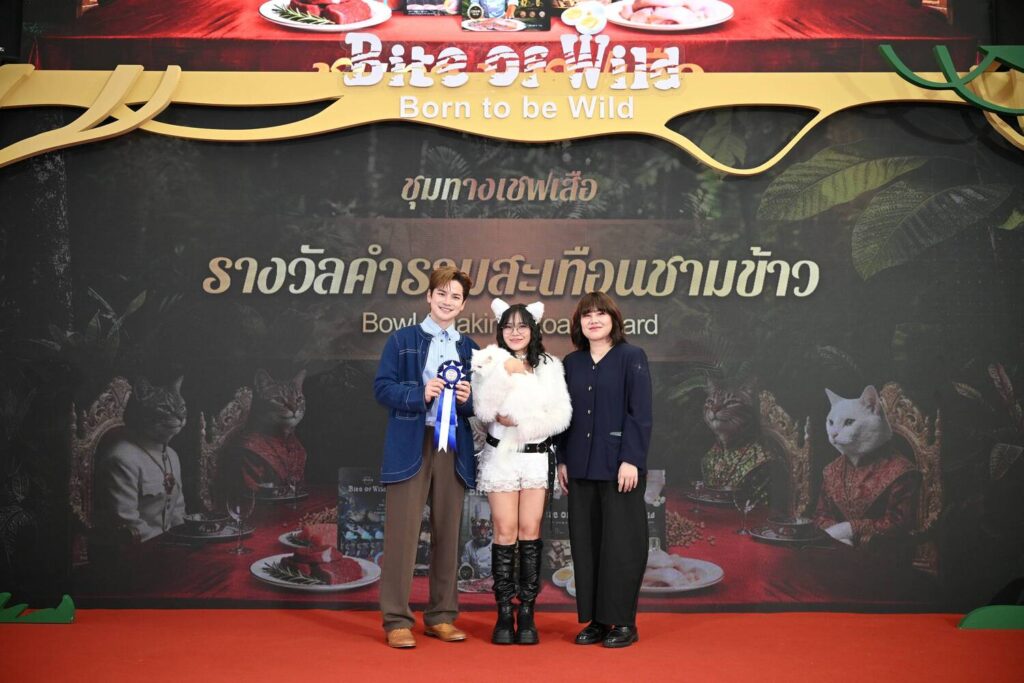 Bite of Wild “ชุมทางเชฟเสือ” นอกจากเสิร์ฟผลิตภัณฑ์อาหารแมวโฮลิสติกในระดับพรีเมียมแล้ว ยังแน่นไปด้วยกิจกรรมมากมายให้เหล่า Cat Lovers ได้พาน้องแมวมาเปิดประสบการณ์และปลุกพลังเสือให้ตื่น อาทิ กิจกรรมไฮไลท์อย่าง Cat Met Gala Red Carpet ให้เหล่าน้องแมวทุกตัวได้เฉิดฉายและเปล่งประกายเสน่ห์เฉพาะตัวในแบบฉบับของตัวเอง งานประกาศรางวัล Wild Moment Awards ให้กับน้องแมวที่มีความโดดเด่นในแต่ละแบบทั้งหมด 7 รางวัล 1) รางวัลสายล่าตัวจริงแห่งพงไพร 2) รางวัลพลังล้นตังแต่เกิด 3) รางวัลเด้งดึงทะลุเพดาน 4) รางวัลมือไวสายสวบตัวตึง 5) รางวัลคํารามสะเทือนชามข้าว 6) รางวัลล่องหนจอมแฝงกาย ที่คัดเลือกผ่านกิจกรรมเฟ้นหาสุดยอดแมวที่ทาง Bite of Wild ให้เหล่าทาสรักส่งโมเมนต์น้องแมวเข้ามาในช่องทางออนไลน์ และรางวัลสุดท้ายรางวัลพิเศษ 7) ตาแป๋วจนใจพ่อละลาย ที่มอบให้ เต๋า – เศรษฐพงศ์ เพียงพอ และ น้องแฮปปี้ คู่ดูโอ้พ่อแมวกับลูกแมวตัวน้อยที่สามารถละลายหัวใจของทุกคนได้อย่างอ่อนโยนด้วยดวงตากลมโตใสซื่อ ก่อนลงจากเวที เต๋าได้กล่าวถึงความรู้สึกว่า “ดีใจมากครับสำหรับรางวัลนี้ที่ทาง Bite of Wild มอบให้ เพราะนี้เป็นครั้งแรกเลยที่พาลูกสาวออกงาน ได้มาเจอเหล่าทาสแมวด้วยกัน ยังไงก็ขอฝากเนื้อฝากตัวน้องแฮปปี้และทาสรักแมวอย่างผมไว้ด้วยนะครับ” พร้อมทิ้งท้ายถึงการเลือกอาหารให้กับน้องแฮปปี้ว่า “ทาสอย่างเราก็ต้องเลือกผลิตภัณฑ์อาหารที่พรีเมียมให้เจ้านายที่เรารัก ต้องสารอาหารครบถ้วนตามโภชนาการที่น้องแมวต้องการ มีพรีไบโอติกส์ โพรไบโอติกส์ ที่ดูแลเรื่องระบบลำไส้ และโปรตีนที่เพียงพอเพื่อเสริมสร้างกล้ามเนื้อ น้องจะได้ระบบย่อยอาหารดี สุขภาพดีจากภายในสู่ภายนอก ไม่เจ็บป่วยและอยู่กับเราไปนานๆ อย่างแข็งแรง” ปิดท้ายงานด้วย ปาร์ตี้คาร์นิวัล สุดลึกลับที่พร้อมปลุกพลังเสือของคุณและน้องแมวให้ได้ปลดปล่อยอย่างอิสระ