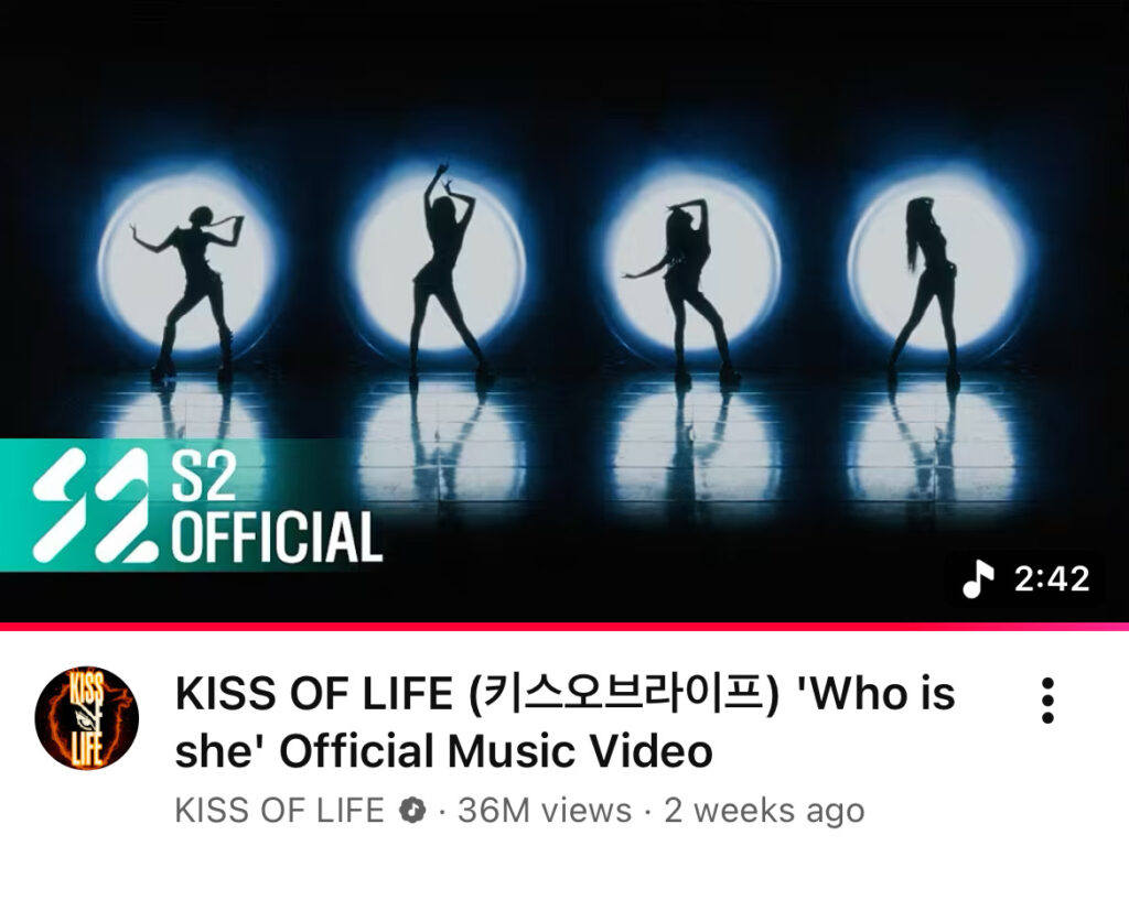 หากจะว่ากันด้วยเรื่องผลงานและความสามารถของ “คิสออฟไลฟ์” (KISS OF LIFE) ก็เป็นที่ประจักษ์เกินกว่าจะวัดจากขนาดค่ายได้ ค่ายเล็กแต่ผลงานยิ่งใหญ่และศิลปินได้เติบโต เพลง ‘Who is she’ ทำลายสถิติเพลงอื่นๆ ของวงในการทำยอดวิวครบ 20 ล้านบนแพลตฟอร์ม YouTube ไวสุดเป็นที่เรียบร้อย เพราะใช้เวลาเพียง 3 วันแรกในการพายอดวิวมิวสิกวิดีโอพุ่งไปถึง 20 ล้านครั้ง และยอดสตรีมมิ่งบน Spotify ทะลุ 1 ล้านครั้งอย่างรวดเร็ว ล่าสุดนี้ ‘Who is she’ Official Music Video https://youtu.be/ygYPwsjyCzQ ยังเดินหน้าเก็บแต้มสะสมยอดวิวได้สูงกว่า 36 ล้านครั้งแล้ว รวมถึงการไต่อันดับบนชาร์ตเพลงต่างๆ ทั้งในประเทศเกาหลีใต้และในระดับโกลบอล ซึ่งยืนยันถึงพลังตัวแม่ของ KISS OF LIFE ได้เป็นอย่างดี
