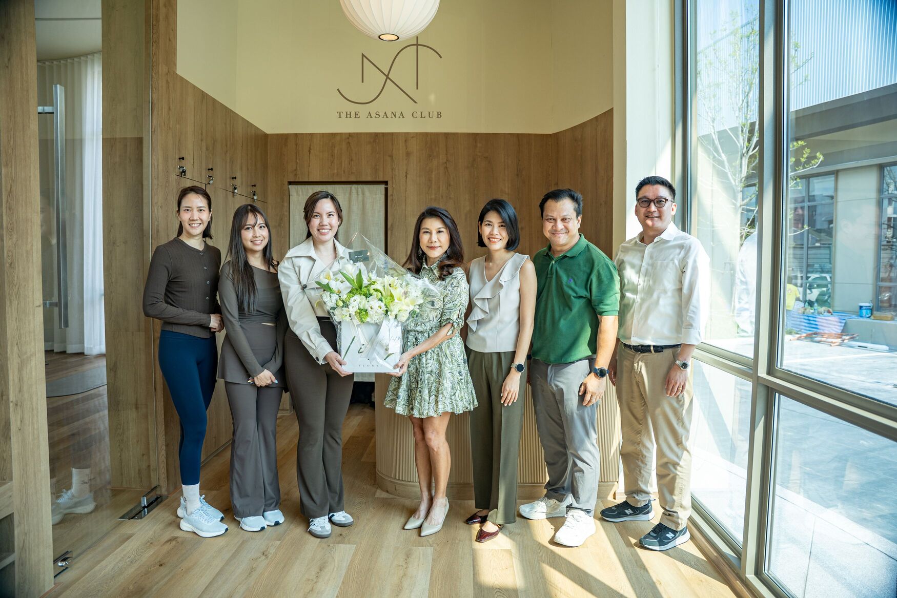 ศุภานวิต เอี่ยมสกุลรัตน์ ประธานเจ้าหน้าที่บริหาร บริษัท เคอี กรุ๊ป จำกัด มอบดอกไม้แสดงความยินดีกับ วริษา สัตยุตม์ ประธานเจ้าหน้าที่บริหาร บริษัท อาสนะ บีเคเค จำกัด เนื่องในโอกาสเปิด “Asana Yoga” สาขา Crystal Sports G ไลฟ์สไตล์สตูดิโอที่ตอบโจทย์การดูแลสุขภาพ โดยมี รัสรินทร์ ธนินคุณธิวัฒน์ และ สองขวัญ สุนทรวิภาต ร่วมแสดงความยินดี ณ สนามเทนนิสในร่ม คริสตัล สปอร์ต จี เมื่อเร็ว ๆ นี้