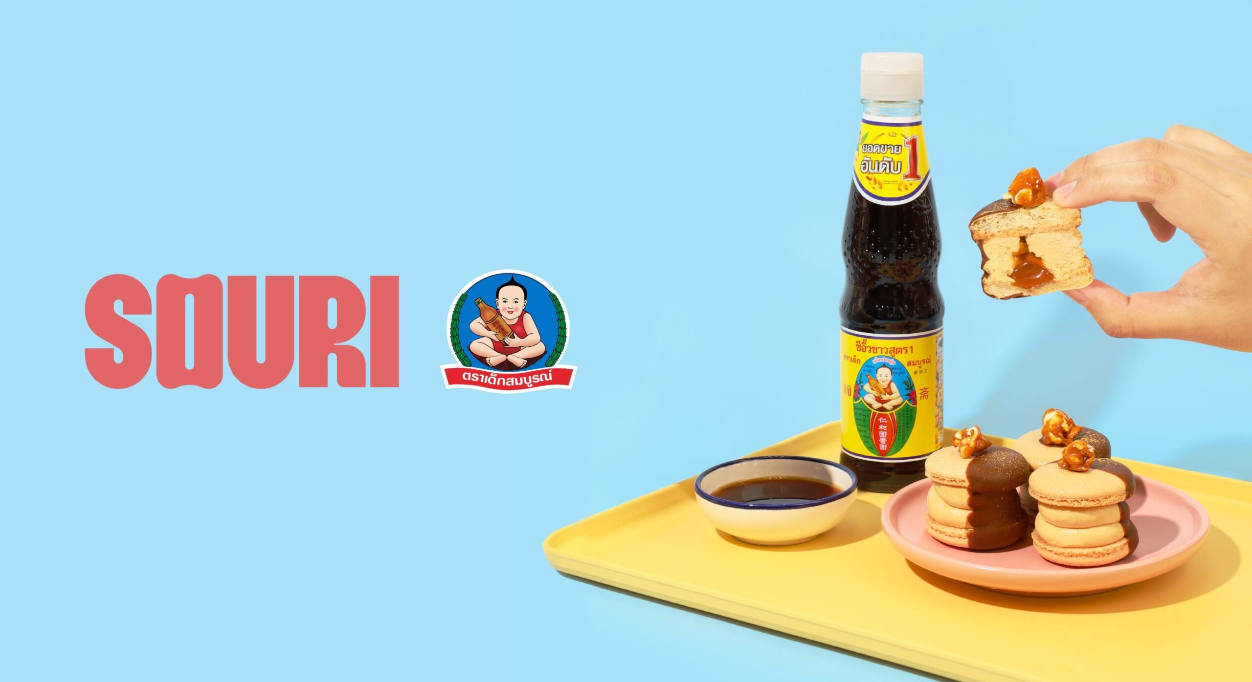 เมื่อสองแบรนด์ที่ต่างขั้วอย่าง SOURI แบรนด์พรีเมียมแฟตการองชื่อดัง และ เด็กสมบูรณ์ ผู้นำด้านเครื่องปรุงรสที่อยู่คู่ครัวไทยมากว่า 80 ปี ประกาศเปิดตัวโพรเจกต์คอลแลบสุดพิเศษ “Fusion Unlocked” โดย SOURI ผุดไอเดียสุดครีเอต ที่ต้องการปลดล็อกขีดจำกัดรสชาติความอร่อย จากการเปลี่ยนภาพจำวัตถุดิบของคาวให้กลายเป็นสุนทรียรสแห่งของหวานได้อย่างไม่น่าเชื่อโดยเริ่มเปิดตัวสินค้าแรกกับแบรนด์เจ้าตลาดซอสของไทยอย่างเด็กสมบูรณ์ กับซีอิ๊วขาวขวดที่ต้องมีทุกบ้าน รังสรรค์รสชาติความอร่อยเป็น “Smiley Boy Soy Sauce Fatcaron” พร้อมจำหน่ายทุกสาขาทั่วประเทศ 15 มกราคม 2569 นี้