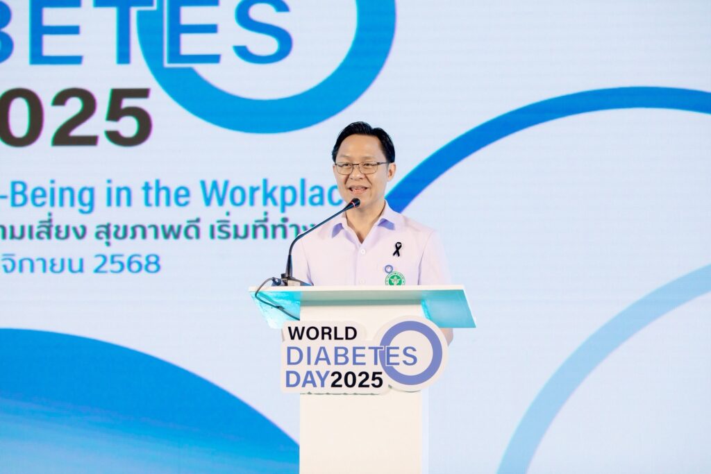 สมาคมโรคเบาหวานแห่งประเทศไทย ในพระราชูปถัมภ์ฯ ร่วมกับ จุฬาลงกรณ์มหาวิทยาลัย กระทรวงสาธารณสุข สำนักงานกองทุนสนับสนุนการสร้างเสริมสุขภาพ (สสส.) และภาคีเครือข่าย ด้านสุขภาพ จัดกิจกรรม “วันเบาหวานโลก ประจำปี 2568 (World Diabetes Day 2025)” ภายใต้แนวคิด “Diabetes and Well-being: Creating Healthy Workplaces for All” หรือ “สุขภาพดี เริ่มที่ทำงาน” ณ อาคาร Siam Scape ชั้น 1 และ ชั้น 9 เพื่อสร้างความตระหนักรู้ถึง ความสัมพันธ์ระหว่าง “สุขภาพ” และ “ชีวิตการทำงาน” พร้อมรณรงค์ให้สถานที่ทำงานทั่วประเทศกลายเป็น “พื้นที่สุขภาวะ” ที่ส่งเสริมคุณภาพชีวิต ของคนไทยทุกคน