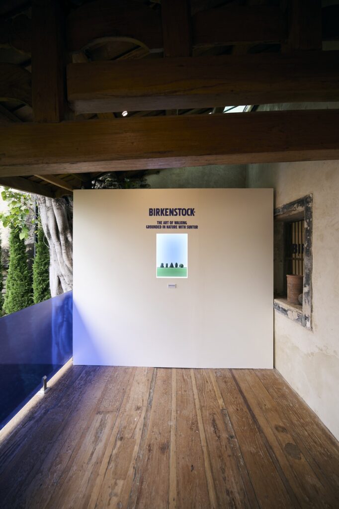 ก่อนเดินเข้าไปภายใน The Chinese House ผู้เข้าชมต้องถอดรองเท้าที่ใส่ออก เพื่อให้ได้รับประสบการณ์การเดินแบบเท้าเปล่า เพื่อให้ฝ่าเท้าสามารถสัมผัสถึงพื้นผิวธรรมชาติได้โดยตรง โดยบริเวณงานชั้นหนึ่งถูกจัดให้เป็น The Hourglass Archive พื้นที่จัดแสดงจุดเริ่มต้นของรองเท้า BIRKENSTOCK นับตั้งแต่การผลิตรองเท้าคู่แรกของแบรนด์ ไปจนถึงการร่วมมือรังสรรค์รองเท้ารุ่นพิเศษกับแบรนด์แฟชั่นอื่นๆ พร้อมให้ผู้เยี่ยมชมได้สัมผัสประสบการณ์การเดินบนพื้นห้องที่ออกแบบให้มีพื้นผิวแตกต่างกันไป ผสมผสานกับเสียงดนตรีที่ให้ความรู้สึกใกล้ชิดกับธรรมชาติ อันเป็นต้นกำเนิดของวัสดุหลักในการผลิตรองเท้าของแบรนด์ ถัดไปบนชั้นสองจัดเป็นโซนคาเฟ่ที่สามารถแวะนั่งพักจิบเครื่องดื่มและเบเกอรี่แสนอร่อย ก่อนจะไปร่วมกิจกรรม Live PhotoBooth บนชั้นเดียวกัน โดยให้ผู้เข้าชมได้ลองใส่รองเท้าของ BIRKENSTOCK เดินเข้าไปภายในตู้ที่ออกแบบมาให้เสมือนกำลังเดินอยู่ในผลงานภาพวาดของ Suntur ที่ชื่อว่า Walk With You, Never Far เพื่อแสดงให้เห็นถึงธีมของการเดินในภูมิทัศน์ที่สะท้อนชื่องาน The Art of Walking