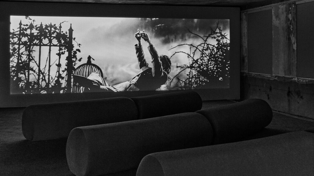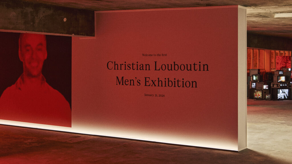 นิทรรศการได้เริ่มต้นจาก Projection Room พื้นที่สีแดงอันเป็นเอกลักษณ์ของ Christian Louboutin (คริสติยอง ลูบูแตง) ที่ถูกแปรเปลี่ยนเป็นปริซึมแห่งแสงและเงา โดย Jaden Smith (เจเดน สมิธ) ได้พาผู้ชมย้อนกลับไปสู่จุดกำเนิดของภาพยนตร์ ผ่านแรงบันดาลใจจาก Niépce, Daguerre และพี่น้อง Lumière เมื่อแสงและการเคลื่อนไหวถูกบันทึกเป็นครั้งแรกบนจอภาพ รองเท้าจากคอลเลกชั่น Men’s Fall/Winter 2026 เคลื่อนไหวเคียงข้างงานศิลป์และพื้นผิวต่างๆ ท่ามกลางแสงเงาของปราสาทยุคกลาง ราวกับกำลังก่อร่างสร้างโลกใบใหม่ของ Christian Louboutin Men อย่างสง่างามและเหนือกาลเวลา