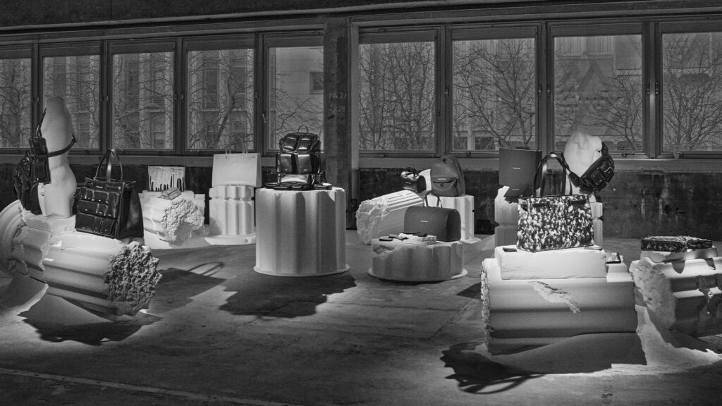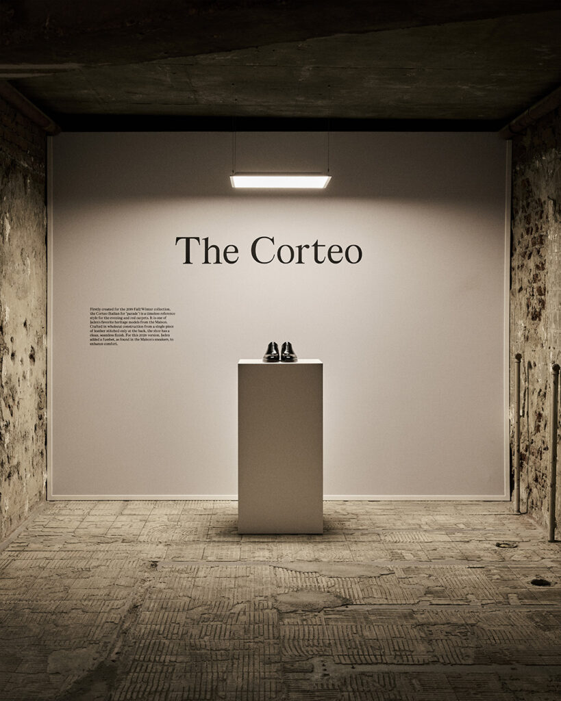 จากนั้นนิทรรศการค่อยๆ เปิดตัวสู่คอลเลกชั่น ที่บรรจุจินตนาการและวัฒนธรรมในแบบของเจเดนเอาไว้ เริ่มต้นด้วย Trapman ซิลลูเอตซิกเนเจอร์ของเมซงที่ถูกตีความใหม่ผ่านกลิ่นอายฮิปฮอปยุค 1990s วัฒนธรรมที่เป็นรากฐานสำคัญในโลกของเขา และเป็นภาษาสากลที่เชื่อมโยงดนตรีเข้ากับแฟชั่น ซึ่งเจเดนเผยว่า “วัฒนธรรมฮิปฮอปคือหัวใจสำคัญของปรัชญาการออกแบบของผม ขณะเดียวกันผมกำลังสร้างสรรค์เครื่องแต่งกายทางการสำหรับสุภาพบุรุษแห่งอนาคต” ถัดมาคือ Corteo ประตูบานสำคัญสู่ประวัติศาสตร์ของเมซง รองเท้าที่เปิดตัวครั้งแรกในฤดู Fall/Winter 2019 และเป็นสัญลักษณ์ของความสง่างามและตัวตนของสุภาพบุรุษ สำหรับเจเดน แล้ว Corteo คือภาพแทนของสุภาพบุรุษนักธุรกิจ คนทำงาน ผู้ที่