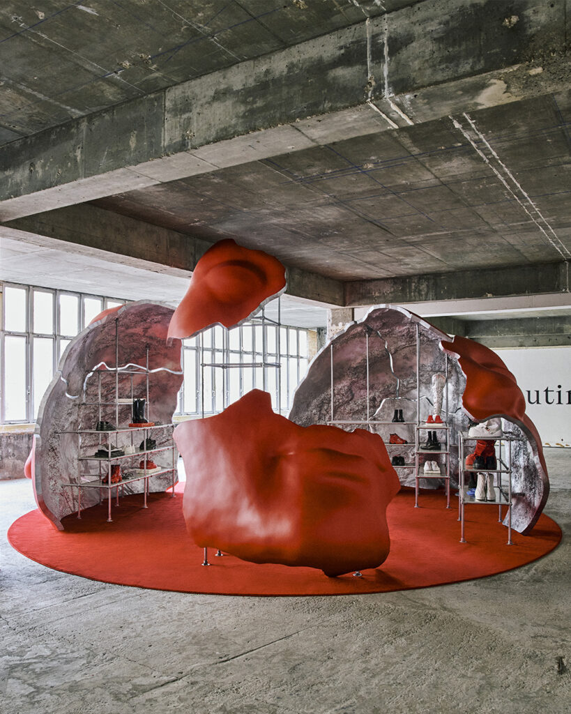 และผู้ชมจะได้เดินผ่านโซน Red anamorphosis ที่เชิดชูสีแดงไอคอนิกของ Christian Louboutin (คริสติยอง ลูบูแตง) และชวนให้ครุ่นคิดถึงมุมมองที่เปลี่ยนไปตามตำแหน่งที่ยืนของผู้ชม ก่อนจะจบการเดินทางด้วยประติมากรรมศีรษะสีแดงขนาดมหึมาที่แตกออกเป็นชิ้นๆ ซึ่งทำหน้าที่เป็นฉากสุดท้ายของนิทรรศการ และเผยบทสรุปของคอลเลกชั่น อย่างทรงพลัง
