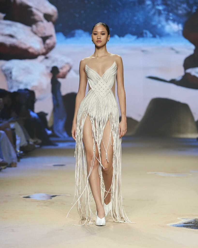ต่อด้วยแบรนด์ RENIM PROJECT มาในคอลเล็กชั่น ‘Cloud Breaker’ ที่ได้รับแรงบันดาลใจจากภาวะโลกร้อน นำเสนอผลงาน Sustainable Fashion สไตล์ Hybrid Utility ผ่านการ Upcycling ยีนส์เก่าและวัสดุเหลือใช้ และปิดท้ายโชว์ Social Buzz ด้วยแบรนด์สุดอาร์ต BLACKSUGAR กับคอลเล็กชั่น ‘Living Curve’ ที่ได้แรงบันดาลใจจากสถาปัตยกรรมล้ำยุค นำเสนอ Conscious Fashion ผ่านการออกแบบที่เน้นความทนทาน และซิลูเอตเหนือกาลเวลา รันเวย์ยังคงลุกเป็นไฟกับโชว์จากแบรนด์ STUDIO UNKNOWN กับคอลเล็กชั่น ‘The Known Unknown’ ถ่ายทอดพลังของผู้หญิงที่มั่นใจ เรียบง่ายแต่เปี่ยมด้วยสไตล์ เธอคือภาพแทนของผู้หญิงในเมืองใหญ่ที่ใช้ชีวิตในแบบของตัวเองอย่างแท้จริง ผสมผสานความเรียบง่ายของเสื้อผ้าเข้ากับโทนสีธรรมชาติที่สะท้อนความสงบ มั่นใจ และอิสระในแบบของแบรนด์ โดดเด่นยิ่งขึ้นไปอีก เมื่อได้เหล่านายแบบและนางแบบชื่อดังมาร่วมเดินรันเวย์ อย่าง โฟร์ท–ณัฐวรรธน์ จิโรชน์ธิกุล, เอมี่–ทสร กลิ่นเนียม, มิ้นท์–รัญชน์รวี เอื้อกูลวราวัตร, หลิน–มชณต สุวรรณมาศ, และ แมน–ธฤษณุ สรนันท์ ที่ต่างถ่ายทอดเสน่ห์ของความมั่นใจในแบบตัวเองได้อย่างน่าประทับใจ ปิดท้ายค่ำคืนวันที่สองอย่างงดงามด้วยแบรนด์ NICHp กับคอลเล็กชั่น ‘The Silent Flow’ มีจุดเริ่มจากคำถามถึงเศษผ้าที่เหลือจากการตัดเย็บ นำไปสู่การสร้างสรรค์ผลงานด้วยเทคนิค Zero Waste ที่นำเศษผ้าชิ้นเล็กชิ้นน้อยมาต่อยอดเป็นดีเทลอันมีเอกลักษณ์ สะท้อนความงามของธรรมชาติเหนือจินตนาการ โดยมี ฟลุ๊ค กะล่อน–ธรรณพ แสงโอสถ และ บีบี-บียังคา ณฐมน โพลัค ที่มาถ่ายทอดเสน่ห์ของความสงบและความเคลื่อนไหวอย่างมีจังหวะ
