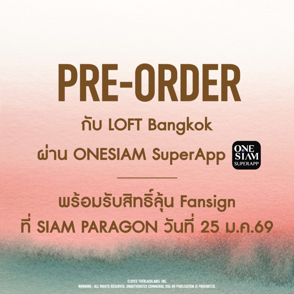 เซอร์ไพรท์นี้มอบให้กับแฟนๆ PARK BO GUM โดยเฉพาะ ห้ามพลาด! เปิดพรีออเดอร์ Photo Album “PARK BO GUM 2026 SEASON’S GREETINGS” ง่ายๆ เพียง Pre-Order ที่ LOFT Bangkok ผ่าน ONESIAM SuperApp ลุ้นเป็น 1 ใน 200 ผู้โชคดี รับ 1 สิทธิ์ลุ้นต่อการซื้อ Photo Album “PARK BO GUM 2026 SEASON’S GREETINGS” 1 อัลบั้ม พร้อมรับ Exclusive Photo Card 1 ใบ / Photo Album ระหว่างวันที่ 1 ธันวาคม 2568 (10.00น.) – 4 มกราคม 2569 (23.59น.) ประกาศผลผู้โชคดีในวันที่ 7 มกราคม 2569 (17.00น.) ขอสงวนสิทธิ์ผู้เข้าร่วมกิจกรรมจะต้องเป็นผู้มีสัญชาติไทย หรือชาวต่างชาติที่มีที่พักอาศัยในประเทศไทย