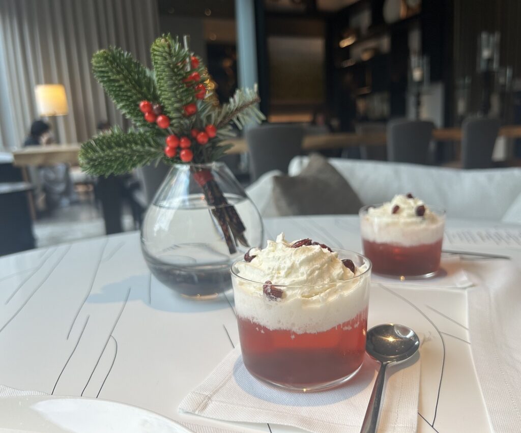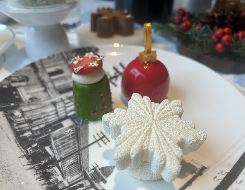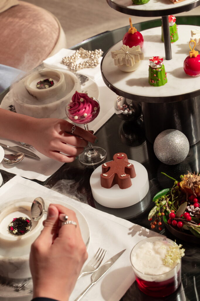 The Holiday Afternoon Tea ถูกรังสรรค์ให้ได้ทั้งกลิ่น รส สัมผัส ผสานเข้ากับศิลปะบนจานขนมหวาน ให้รสชาติแสนอร่อย และรสสัมผัสที่ซับซ้อนออกมาเป็นชุดน้ำชายามบ่าย ที่ผสมผสานความหรูหราและความประณีตไว้อย่างลงตัว ผสานรสชาติความเป็นไทย และสากลเข้าด้วยกันอย่างลงตัวอย่างเมนู Sicilian Red Prawn Tangerine Lemonglass & Coriander Tom Kha Foie Gras , Blue Crab &Pineapple Ceviche Roll, Comte Cheese & Perigord Black Truffle Sanwich , Snow Flake ,Gingerbread Man และ ฺBlack Forest รวมทั้งเครื่องดื่มสีสวยสดชาตืสดชื่นที่ออนท็อปมาด้วยวิปครีม