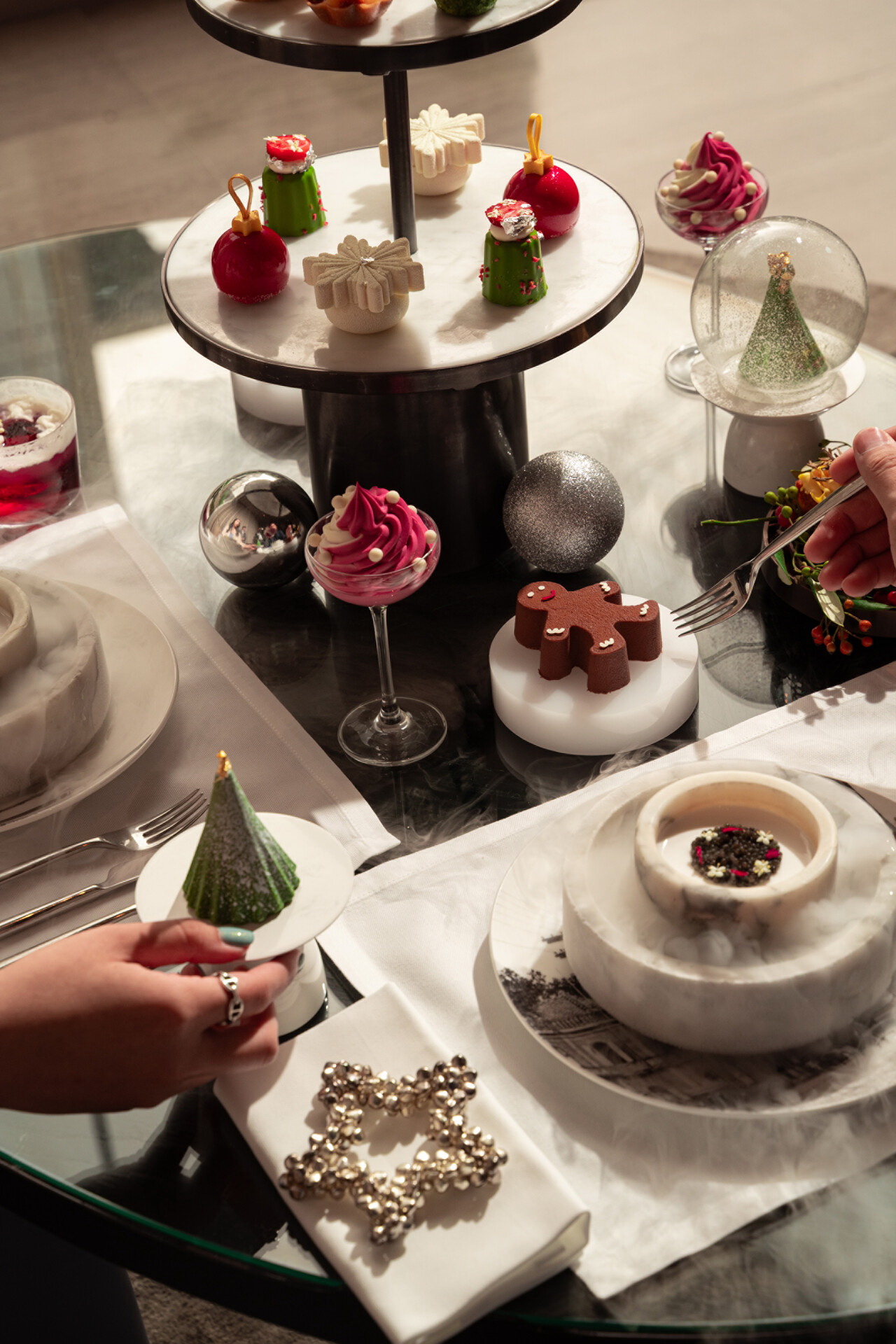 The Holiday Afternoon Tea ถูกรังสรรค์ให้ได้ทั้งกลิ่น รส สัมผัส ผสานเข้ากับศิลปะบนจานขนมหวาน ให้รสชาติแสนอร่อย และรสสัมผัสที่ซับซ้อนออกมาเป็นชุดน้ำชายามบ่าย ที่ผสมผสานความหรูหราและความประณีตไว้อย่างลงตัว ผสานรสชาติความเป็นไทย และสากลเข้าด้วยกันอย่างลงตัวอย่างเมนู Sicilian Red Prawn Tangerine Lemonglass & Coriander Tom Kha Foie Gras , Blue Crab &Pineapple Ceviche Roll, Comte Cheese & Perigord Black Truffle Sanwich , Snow Flake ,Gingerbread Man และ ฺBlack Forest รวมทั้งเครื่องดื่มสีสวยสดชาตืสดชื่นที่ออนท็อปมาด้วยวิปครีม