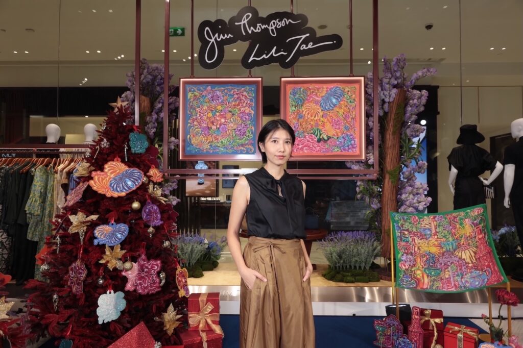 คอลเลกชัน Jim Thompson X LILI TAE เป็นการสานต่อแคมเปญ Jim Thompson Artists-in-Residence 2025: Scarf Edition ที่จิม ทอมป์สัน ชวนศิลปินไทยร่วมสมัยมารังสรรค์งานศิลป์ในมุมมองใหม่บนผ้าพันคอผ้าไหมสุดไอคอนิก