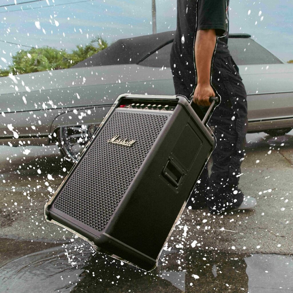 Bromley 750 สะกดทุกสายตา ด้วยดีไซน์พรีเมี่ยมที่สะท้อนเอกลักษณ์งานออกแบบอันเป็นเอกลักษณ์ของ Marshall ด้วย แผงควบคุมโลหะแบบขัดเงา  หนังแบบ water-based ที่ เป็นมิตรต่อสิ่งแวดล้อม และตะแกรงโลหะปั๊มลายอันเป็นเอกลักษณ์ ดีไซน์ที่ไม่เพียงโดดเด่นสะดุดตา แต่ยังทนทานทุกสภาพอากาศ ไม่เกรงกลัวต่อฝุ่นหรือฝนด้วยมาตรฐานกันน้ำกันฝุ่นระดับ IP54