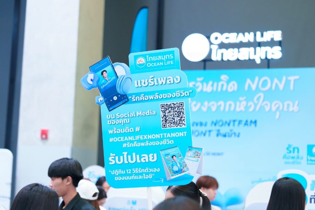 นอกจากนี้ OCEAN LIFE ไทยสมุทรประกันชีวิต ยังจัดเต็มกิจกรรมสุดเอ็กซ์คลูซีฟ “อวยพรวันเกิด NONT ผ่านตู้โทรศัพท์” ให้แฟนคลับได้อัดคลิปและเสียงอวยพรวันเกิดแบบอบอุ่น แล้ว OCEAN LIFE ไทยสมุทรประกันชีวิตจะเป็นสะพานเชื่อมทุกพลังความรัก รวบรวมทุกความรู้สึกดีๆ ส่งมอบเป็นของขวัญสุดเซอร์ไพรส์ให้แก่เจ้าของวันเกิดในปีนี้ และยังจัดกิจกรรมแจกของรางวัลแรร์ไอเท็ม เพียงแชร์เพลง “รักคือพลังของชีวิต” ลงบน Social Media พร้อมติด hashtag #OCEANLIFExNONTTANONT #รักคือพลังของชีวิต ก็รับไปเลย “ปฏิทิน 12 วิธีรักตัวเอง เพื่อได้ทำสิ่งที่รักไปนานๆ” ซึ่งงานนี้มีแฟนคลับต่อคิวร่วมกิจกรรมกันแถวยาวเหยียด และอีกหนึ่งกิจกรรมง่ายๆ เพียงดาวน์โหลด OCEAN CLUB APP มีสิทธิลุ้นรับของรางวัลกลับบ้าน พร้อมรอยยิ้มแห่งความสุขที่ OCEAN LIFE ไทยสมุทรประกันชีวิต ตั้งใจมอบประสบการณ์สุดพิเศษนี้ให้กับลูกค้าอย่างต่อเนื่อง OCEAN LIFE ไทยสมุทรประกันชีวิต ใช้ความรักเป็นพลังขับเคลื่อนองค์กร โดยไม่หยุดพัฒนาในทุกมิติ เพื่อทำให้ประกันชีวิตเป็นเรื่องง่าย ทำให้คนไทยเข้าถึงประโยชน์ของการประกันชีวิตได้มากที่สุด พร้อมแล้วที่จะเป็นส่วนหนึ่งในการดูแลโลกและสังคม เพื่อส่งมอบอนาคตที่ยั่งยืนให้กับคนรุ่นต่อไปได้ใช้ชีวิตอย่างมั่นคง มั่นใจ ปลอดภัย มีความสุข สนใจติดตามรายละเอียดเพิ่มเติมได้ที่ Facebook: Ocean Life ไทยสมุทรประกันชีวิต LINE Official: @OceanLife  เว็บไซต์ www.ocean.co.th หรือติดต่อ OCEAN LIFE CONTACT CENTER  1503