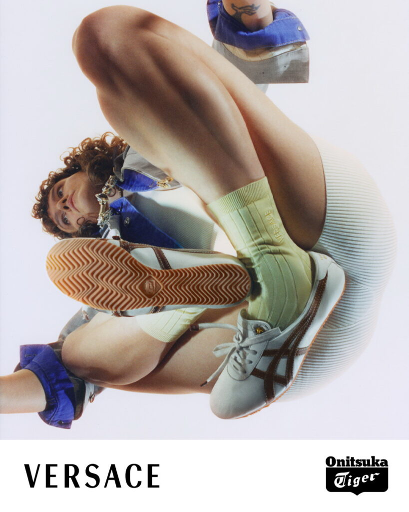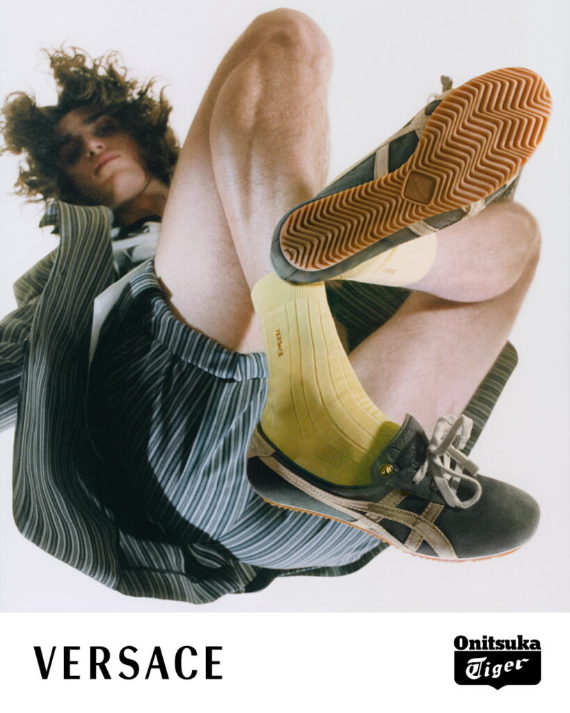 Onitsuka Tiger (โอนิซึกะ ไทเกอร์) รองเท้ารุ่นคอลลาบอเรชั่น ได้รับแรงบันดาลใจมาจากรองเท้ารุ่นต้นแบบ อย่างรุ่น TAI-CHI โดยมีการผลิตที่ Onitsuka Innovative Factory โรงงานแห่งใหม่ของ Onitsuka Tiger ที่ได้เปิดตัวไปเมื่อต้นปี 2026 ที่ตั้งอยู่ ณ จังหวัดทตโตริ ในภูมิภาคซานิน วัสดุที่ใช้ในการผลิตถูกคัดสรรอย่างพิถีพิถันจากอิตาลี ความโดดเด่นของรองเท้ารุ่นคอลลาบอเรชั่นอยู่ที่การเย็บตะเข็บคู่บนลาย Onitsuka Tiger Stripes และสัญลักษณ์เมดูซ่าอันเป็นเอกลักษณ์ของ Versace ที่ประดับด้วยหมุดบนลิ้นรองเท้า ส่วนบนของรองเท้าผ่านกระบวนการฟอกหรือขัด เพื่อให้ได้พื้นผิวแบบวินเทจ นอกจากนี้ยังมีรองเท้า Loafer ที่ผลิตในอิตาลีด้วย ซึ่งผลงานรุ่นพิเศษเหล่านี้สะท้อนถึงการออกแบบที่พิถีพิถันซึ่งเกิดขึ้นจากการผสมผสานงานฝีมือของอิตาลีและญี่ปุ่นไว้อย่างลงตัว