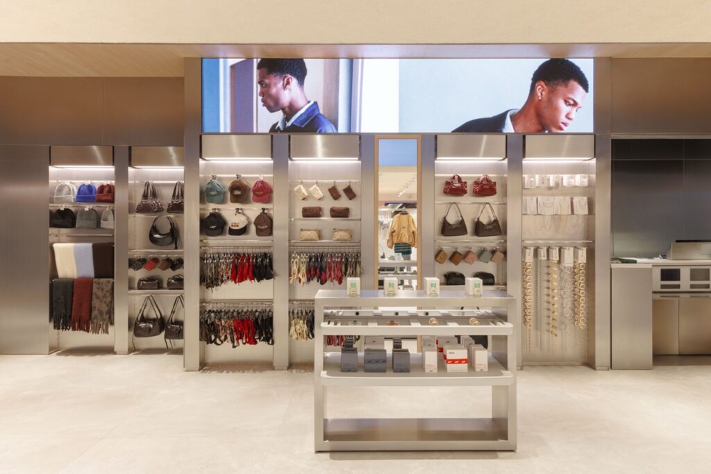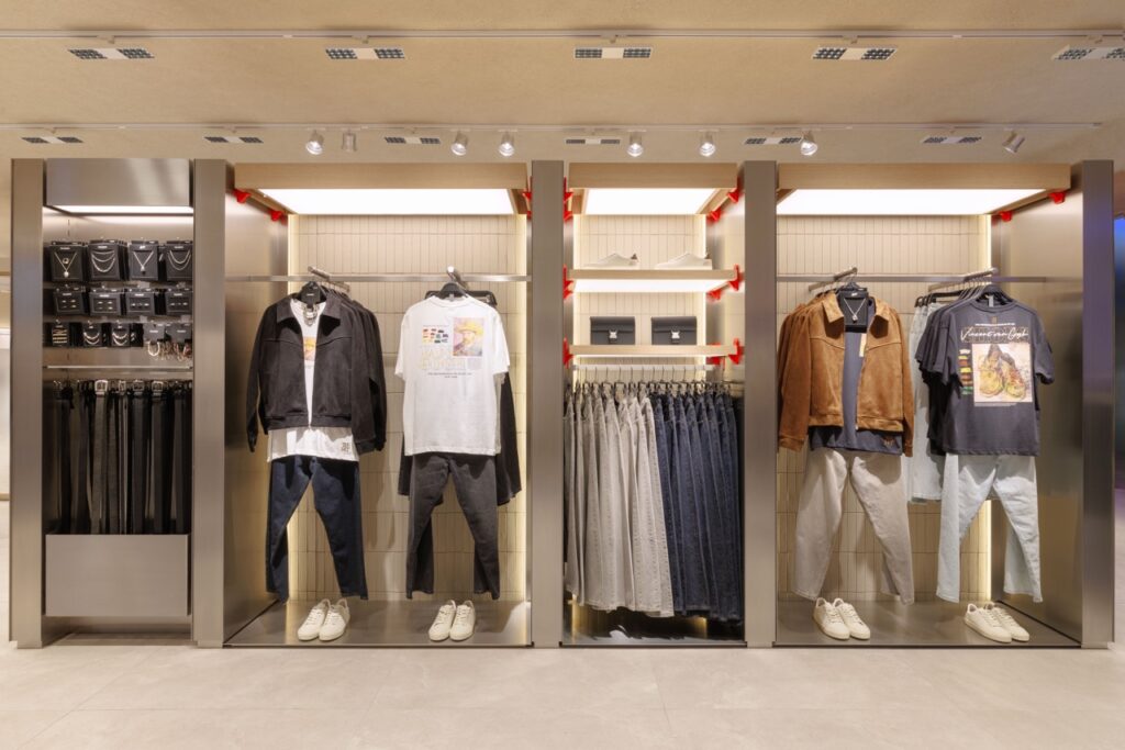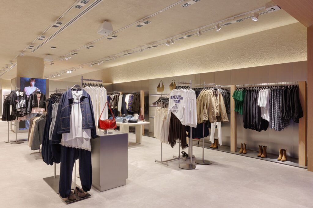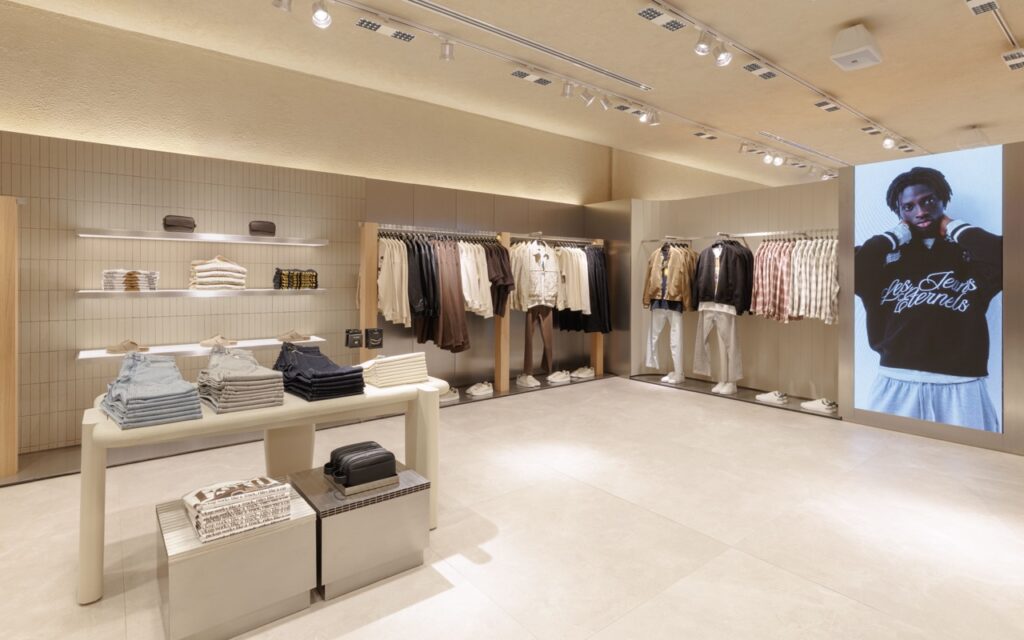 สาขาใหม่แห่งนี้ รังสรรค์ขึ้นบนพื้นที่กว่า 600 ตารางเมตร โดยมีคอนเซปต์การออกแบบในสไตล์เรียบหรู ลดทอนรายละเอียดอย่างมีชั้นเชิง พร้อมดีไซน์การจัดแสดงเสื้อผ้ารูปแบบใหม่ ซึ่งช่วยเปิดมุมมองของพื้นที่ให้มีความโปร่งและกว้างขวางมากยิ่งขึ้น ผสานเข้ากับการตกแต่งภายในร้านที่เลือกใช้พื้นผิวสีขาว วัสดุโลหะ และองค์ประกอบส่องสว่างเข้าไว้ด้วยกันอย่างลงตัว