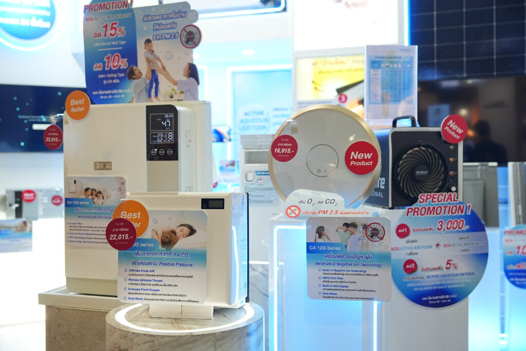 นวัตกรรมเพื่อบ้านและอาคารที่ก่อสร้างไว้ในที่เดียว มาพร้อมโซลูชันใหม่ อาทิ SCG Solar Roof พร้อมบริการครบวงจร มาพร้อมกับ ArcBox เพิ่มความปลอดภัยจากไฟไหม้ ทั้งยังยกระดับคุณภาพการอยู่อาศัยตอบโจทย์ 4 เรื่องหลัก ได้แก่ 1. การประหยัดพลังงาน โดย ‘SCG Solar Roof’ ประหยัดค่าไฟสูงสุดถึง 60% พร้อมแพ็กเกจหลากหลายตอบทุกโจทย์การใช้งานทั้งประเภทบ้านและอาคาร มั่นใจยิ่งกว่าด้วยนวัตกรรมการติดตั้งที่ทนทานต่อแรงลม รองรับทุกสภาพอากาศ 2. แก้ไขปัญหาคุณภาพอากาศ โดย ‘SCG Active Air Quality’ นวัตกรรมการเติมอากาศดี ที่มีระบบการกรองถึง 6 ชั้น เพื่อบล็อคฝุ่นและเชื้อโรค เพิ่มออกซิเจนในบ้านมีหลายรุ่นเหมาะกับทุกพื้นที่การใช้งานด้วยดีไซน์เรียบ ทันสมัยเข้ากับทุกสไตล์ 3. Active Monitoring System ระบบตรวจสอบการทำงานแจ้งเตือนความผิดปกติพร้อมทีมงานสนับสนุนการแก้ไข