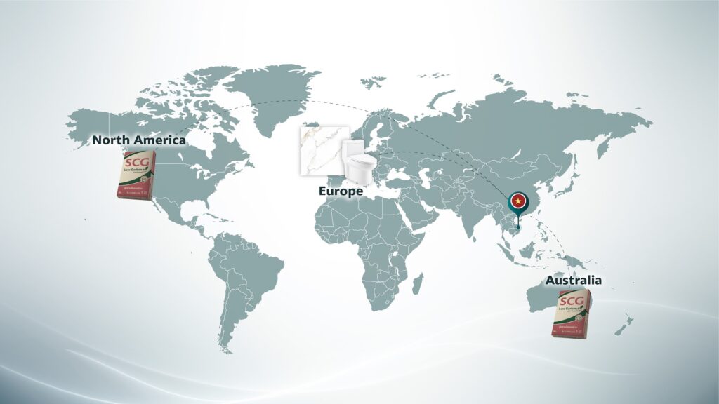 กลยุทธ์ที่ 3 : รุกตลาดเวียดนาม ซึ่งเป็นฐานการผลิตใหม่เพื่อส่งออกตลาดโลก เพราะเวียดนามมีการเติบโตโดดเด่น และมีค่า GDP เติบโตกว่า 7% ซึ่งเอื้อต่อธุรกิจอสังหาฯ–ก่อสร้าง–บริโภค และมีต้นทุนการผลิตแข่งขันได้ทั้งพลังงาน แรงงาน และโลจิสติกส์ เอสซีจีจึงเร่งขยายฐานในเวียดนามโดยเพิ่มกำลังการผลิตปูนคาร์บอนต่ำให้ได้ 8,000 ตันต่อวัน เพื่อจำหน่ายในประเทศและส่งออกไปยังอเมริกา ออสเตรเลีย และยุโรป และขยายการผลิตและส่งออกเซรามิกจากเวียดนามสู่ตลาดโลก ซึ่งโรงงานลองเซิน ปิโตรเคมิคอลส์ เวียดนาม (LSP) จะเพิ่มสัดส่วนการใช้วัตถุดิบก๊าซโพรเพน ในการแข่งขันช่วงที่สภาวะราคาวัตถุดิบผันผวน ส่วนโครงการเพิ่มวัตถุดิบก๊าซอีเทนก็ยังเดินหน้าตามแผน ซึ่งคาดว่าโครงการนี้จะเสร็จในช่วงปลายปี 2570 ซึ่งจะช่วยลดต้นทุนการผลิต และเพิ่มขีดความสามารถการแข่งขันได้ในระยะยาว”