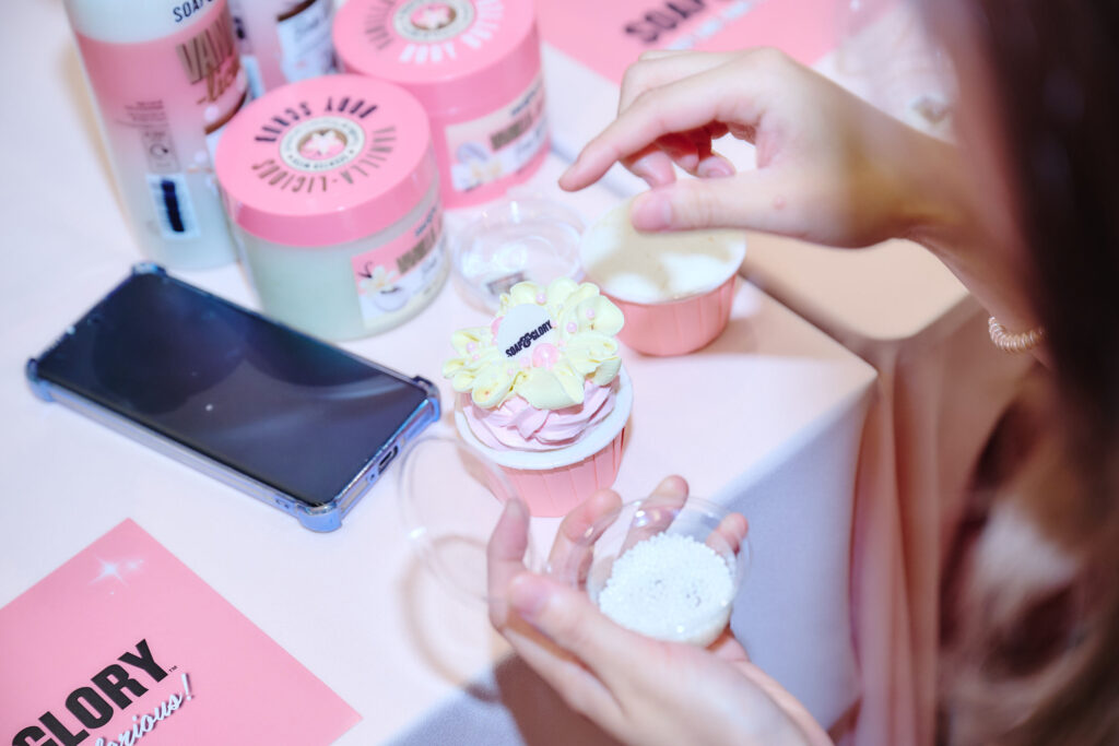 บรรยากาศหอมหวานละมุนอบอวลไปทั่วงาน เมื่อ Soap & Glory แบรนด์บิวตี้ชื่อดังจากประเทศอังกฤษ จัดกิจกรรมพิเศษ Soap & Glory Vanilla-licious ในเวิร์คชอปคัพเค้กสุดเอ็กซ์คลูซีฟ ชวนเหล่าสาวบิวตี้เลิฟเวอร์มาสัมผัสเสน่ห์ความหอมรูปแบบใหม่ ในเวิร์คชอปตกแต่งคัพเค้กสุดเอ็กซ์คลูซีฟ ภายใต้คอนเซ็ปต์ “Vanilla-licious” กลิ่นหอมแบบลูกคุณ ละมุนจนน่าลิ้มลอง ราวกับขนมสุดหรูที่ถ่ายทอดความอบอุ่น สดใส และความสุขที่ใคร ๆ ก็เข้าถึงได้
