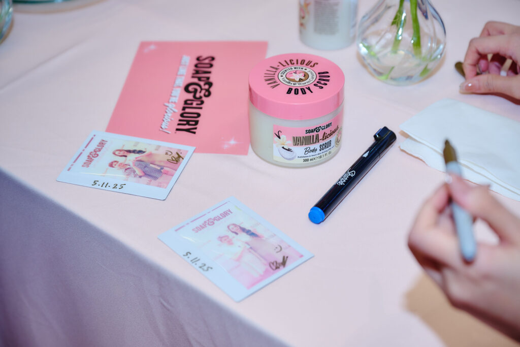 ภายในงานได้มีนักแสดงสาวสุดน่ารัก แบม – สราลี ประสิทธิ์ดำรง” มาร่วมสร้างสีสันและแบ่งปันโมเมนต์สุดพิเศษกับแฟน ๆ พร้อมร่วมสัมผัสประสบการณ์แห่งความหอมผ่านการทำขนม กับเชฟทำขนมประสบการณ์กว่า 10 ปี มาทำคัพเค้กในแบบฉบับ Soap & Glory ที่ทั้งสดใส สนุก และเต็มไปด้วยพลังบวก เรียกรอยยิ้มจากผู้ร่วมงานได้ตลอดกิจกรรม