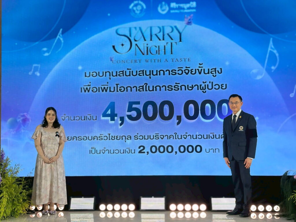 คุณหมอเฟย์ แพทย์หญิงนันทิชา ไชยกุล ในฐานะประธานจัดงาน และได้ร่วมมือกับ คุณศักดิ์สิทธิ์ แท่งทอง จัดมินิ คอนเสิร์ต พร้อมดินเนอร์ในงาน “STARRY Night Concert With A Taste” เพื่อหารายได้ช่วยเหลือกองทุน “Hope for Sarcoma” ภายใต้ศิริราชมูลนิธิ จัดหาทุนเพื่องานวิจัยมะเร็งเนื้อเยื่อเกี่ยวพันขั้นสูง (มะเร็งซาร์โคม่า) ซึ่งเป็นมะเร็งที่พบได้น้อยเมื่อเทียบกับมะเร็งชนิดอื่น ทำให้ข้อมูลและแนวทางการรักษายังมีจำกัด อีกทั้งยังตรวจพบได้ยากจากการตรวจสุขภาพทั่วไป ดังนั้นเงินที่ได้รับจากการสนับสนุนในงานครั้งนี้จะถูกนำไปใช้ในการศึกษาค้นคว้าเชิงลึก และพัฒนาองค์ความรู้เฉพาะทางเกี่ยวกับมะเร็งซาร์โคมา ทั้งในด้านชีววิทยาโมเลกุล การตอบสนองต่อการรักษา และการพัฒนาวิธีรักษาแบบผสมผสานที่เหมาะสมกับผู้ป่วยแต่ละราย