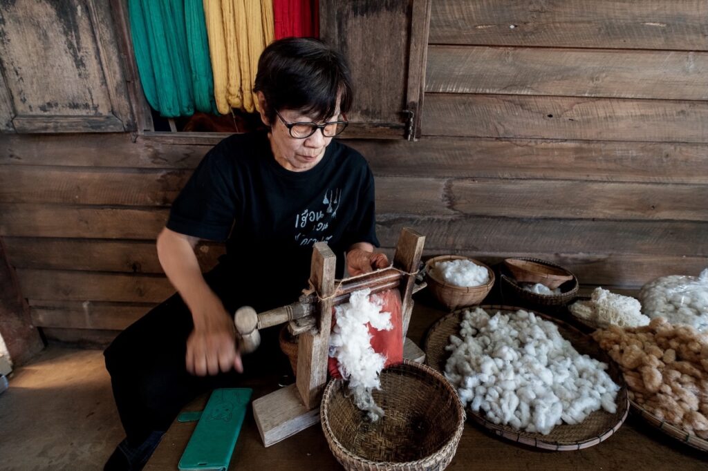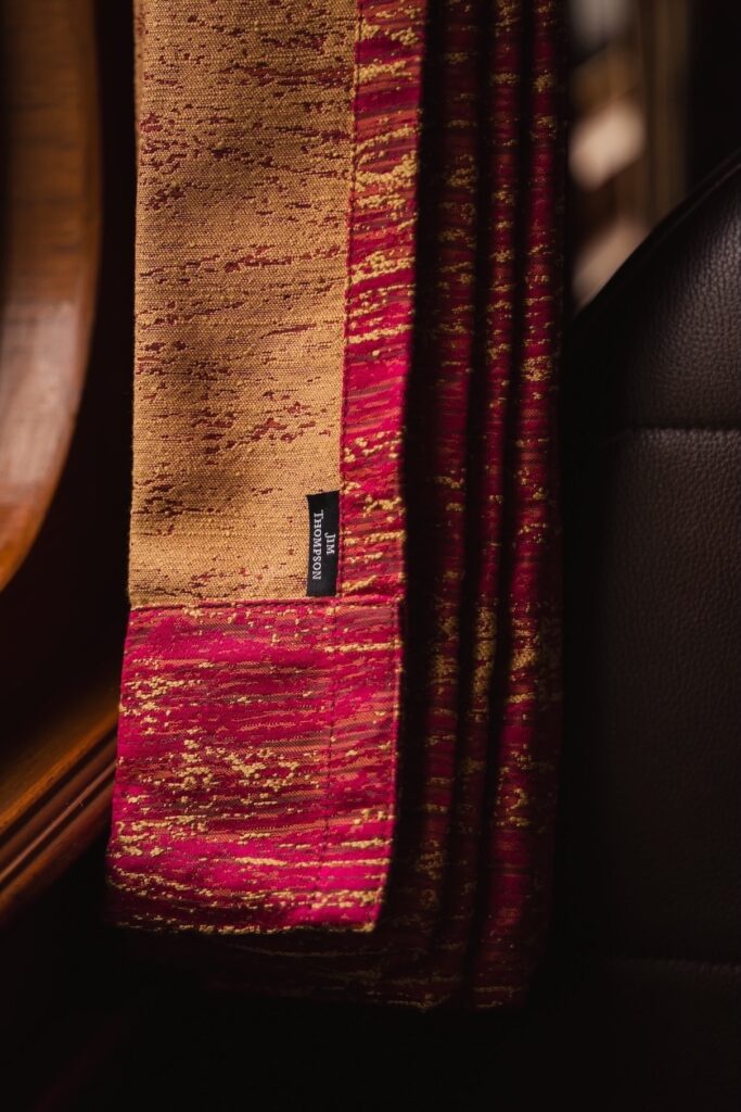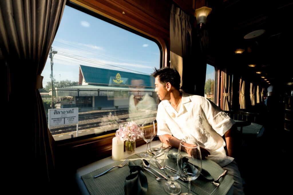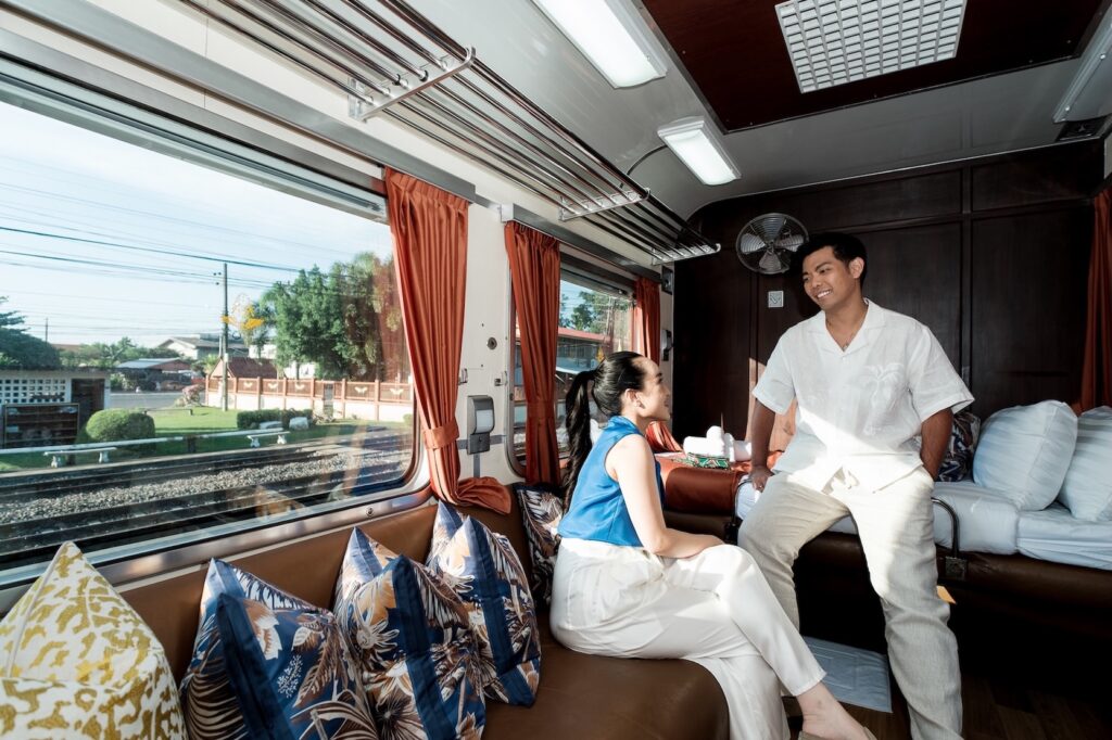 ภายในขบวนรถไฟประกอบด้วยโซนชมวิว ห้องอาหาร และห้องพักส่วนตัว แต่ละโซนประดับด้วยผ้าจาก Jim Thompson Home Furnishings ที่โด่งดังจากผ้าคุณภาพสูงที่โรงแรมและที่พักอาศัยระดับไฮเอนด์ทั่วโลกเลือกใช้ แต่ละมุมสะท้อนความเป็นไทยด้วยผ้าไหม ทั้งผ้าม่าน ปลอกหมอน ผ้าคาดเตียง ไปจนถึงผ้าปูโต๊ะ รวมถึงไอเทมบนโต๊ะอาหาร อาทิ แผ่นรองจาน ผ้าเช็ดปาก ที่รองแก้ว ไปจนถึงชุดสิ่งอำนวยความสะดวก (Amenity Kit) ที่ประกอบด้วยกระเป๋าเครื่องสำอางและผ้าปิดตา ไอเทมส่วนใหญ่อวดลายพรินต์ที่ดึงแรงบันดาลใจมาจากธรรมชาติ และหลายชิ้นเชิดชูเทคนิคการทอผ้าแบบดั้งเดิมเพื่อถ่ายทอดความประณีตของงานหัตถศิลป์ไทย