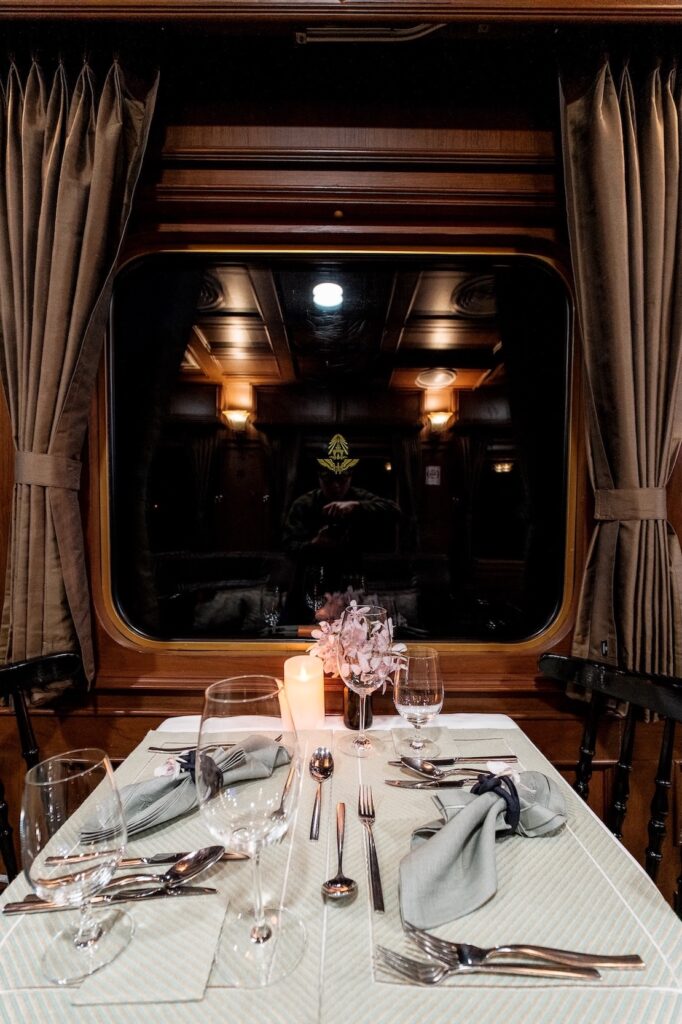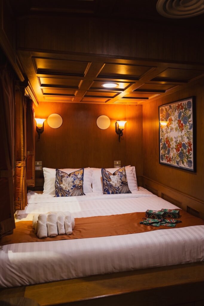 เมื่อก้าวสู่ขบวนรถไฟ นักเดินทางจะพบกับการตกแต่งภายในที่รังสรรค์จากไอเทมตกแต่งมากกว่า 2,000 ชิ้นของจิมทอมป์สัน เนรมิตทั้ง 10 ตู้โดยสารให้กลายเป็นพื้นที่โชว์เคสผลงานหัตถศิลป์ฝีมือคนไทย พร้อมนำเสนอในโทนสีที่เข้ากับบรรยากาศเปี่ยมมนต์เสน่ห์ของรถไฟขบวนนี้