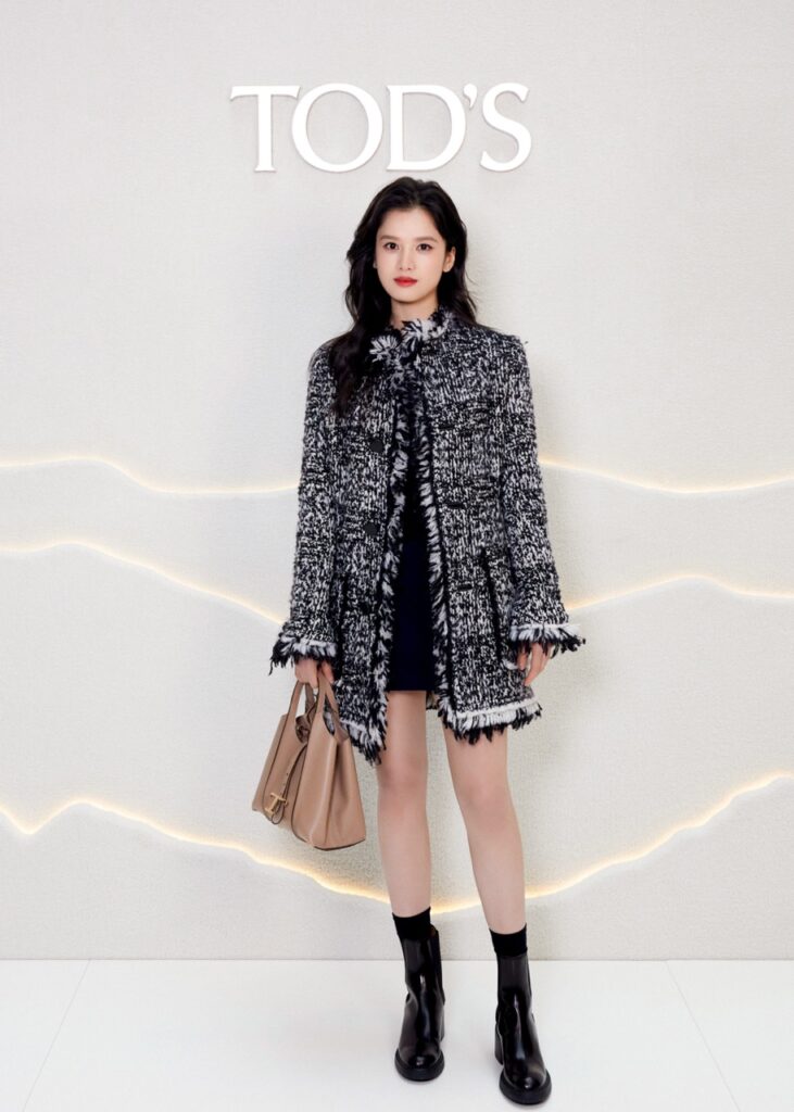Tod’s House Ambassador Zhang Jingyi ปรากฏตัวในลุคแจ็กเก็ตผ้าวูลทอผ้าบูเคล่ (Bouclé) สีดำ-ขาว เปี่ยมด้วยความสง่างามเหนือกาลเวลา จับคู่กับรองเท้าบูทหุ้มข้อดีไซน์มินิมอลและกระเป๋ารุ่น T Timeless เพื่อมอบลุคที่เรียบหรูอย่างมีชั้นเชิง ราวกับกำลังดื่มด่ำอยู่ในโลกแห่งงานฝีมือ ถ่ายทอดความเข้มแข็งจากภายในและความสง่างามอันอ่อนโยน เติมเต็มบรรยากาศฤดูหนาวด้วยความหรูหราแต่คงไว้ซึ่งความเรียบง่าย