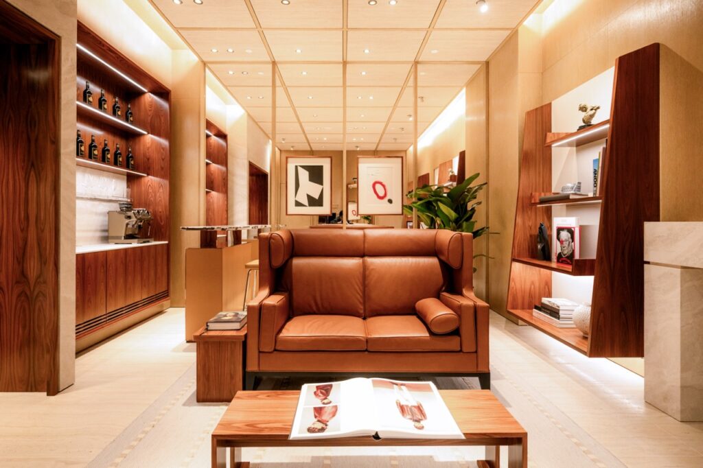 แฟล็กชิปสโตร์มาเก๊าครอบคลุมพื้นที่ขนาด 223 ตารางเมตรและพื้นที่ช้อปปิ้งถึง 3 โซน ทั้งยังเป็นบูติก Tod’s ลำดับที่ 3 ต่อจากมิลานและลอสแอนเจลิส ที่นำเสนอ J.P. Club ซึ่งเป็นพื้นที่ส่วนตัวสุดเอ็กซ์คลูซีฟสำหรับลูกค้าคนสำคัญ โดยพื้นที่แห่งนี้ซ่อนตัวอยู่หลังประตูไม้วอลนัทบานคู่ พร้อมต้อนรับแขกคนพิเศษให้ดื่มด่ำไปกับโอเอซิสแห่งความหรูหราใจกลางเมือง โดดเด่นด้วยเตาผิงหินอ่อนสีขาวและบาร์เคาน์เตอร์ท็อปหินอ่อน มอบบรรยากาศเสมือนบ้านพักส่วนตัวสุดหรู โดย Tod’s ตั้งใจมอบประสบการณ์การช้อปปิ้งแบบลักชัวรีสไตล์อิตาลีที่แท้จริง พร้อมตอกย้ำความมุ่งมั่นของแบรนด์ต่อมาเก๊าและเขตเศรษฐกิจพิเศษ Greater Bay Area