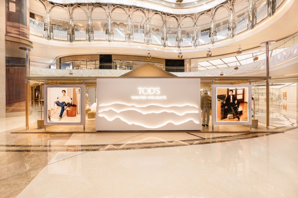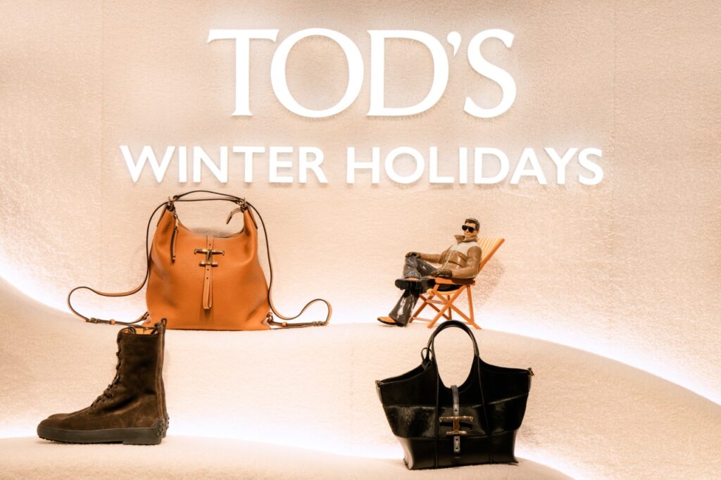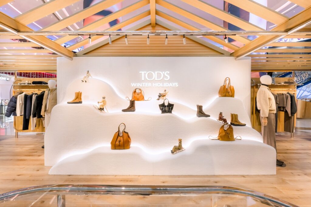 ภายในวันเดียวกันนั้น Tod’s ได้เผยโฉมป๊อปอัพสโตร์ “Winter Holidays” ณ บริเวณเอเทรียมของศูนย์การค้า Galaxy Macau โดยพื้นที่สุดหรูแห่งนี้สะท้อนกลิ่นอายแห่งเทศกาลวันหยุดตามวิถีชีวิตแบบอิตาลี มาพร้อมดีไซน์ที่ชวนนึกถึงเสน่ห์ทิวทัศน์เทือกเขาแอลป์ (Alps) ผ่านโครงสร้างบ้านพักตากอากาศสไตล์ชาร์เล่ต์ ตกแต่งด้วยแพลตฟอร์มชั้นวางที่ออกแบบคล้ายภูเขาหิมะ อุปกรณ์สกีประทับโลโก้แบรนด์ และกระเช้าลอยฟ้าขนาดจริงประดับด้วยหนังและแก้ว  มอบบรรยากาศที่สะท้อนการตัดกันระหว่างความบริสุทธิ์ของหิมะและความอบอุ่นของบรรดาวัสดุอันประณีตได้อย่างลงตัว ตอกย้ำความทุ่มเทของ Tod’s ที่มีต่องานฝีมือและการแสวงหาคุณภาพสูงสุด
